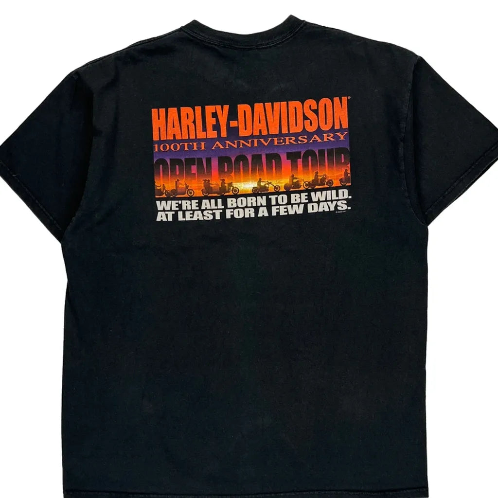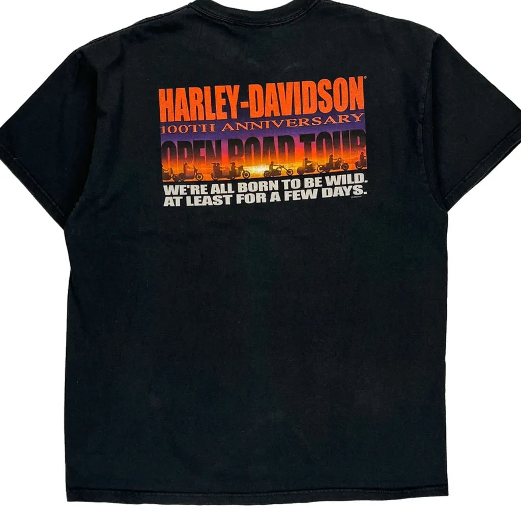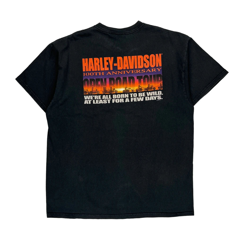 100Th Anniversary Open Road Tour Harley Davidson Graphic T-Shirt - XL Black Cotton