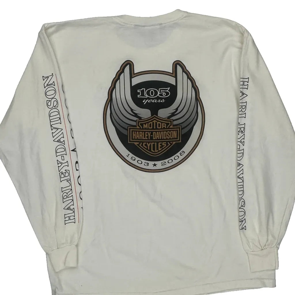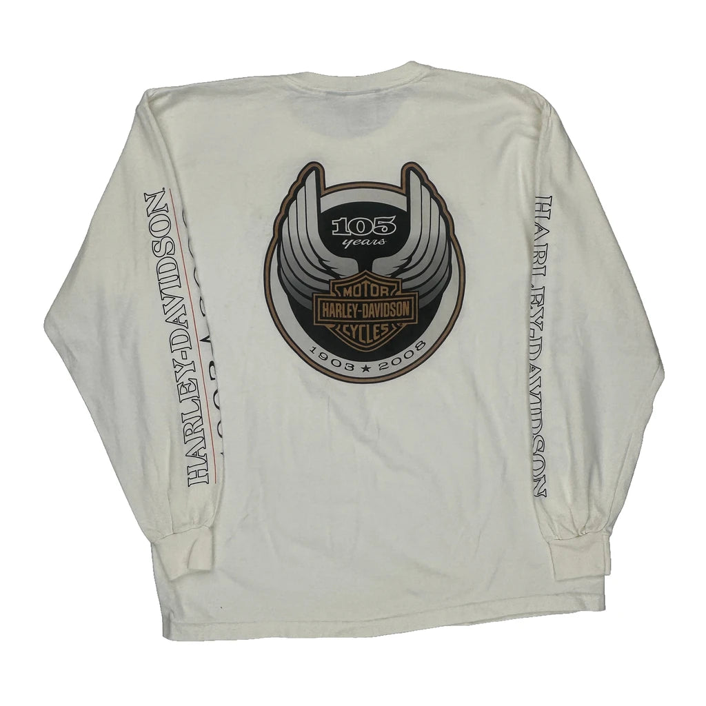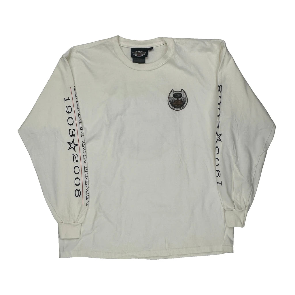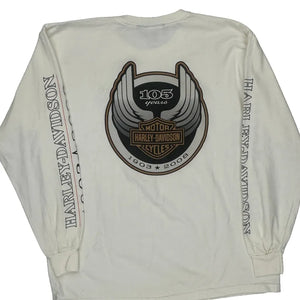 105Th Anniversary Harley Davidson Graphic Long Sleeve T-Shirt - Large Cream Cotton