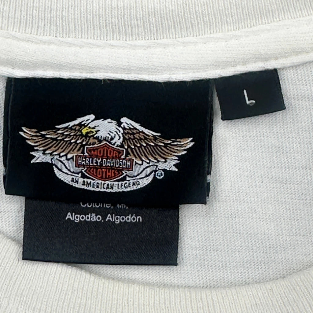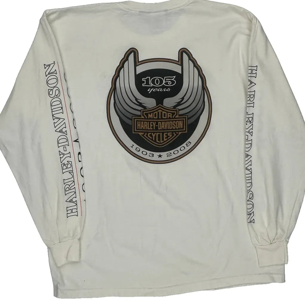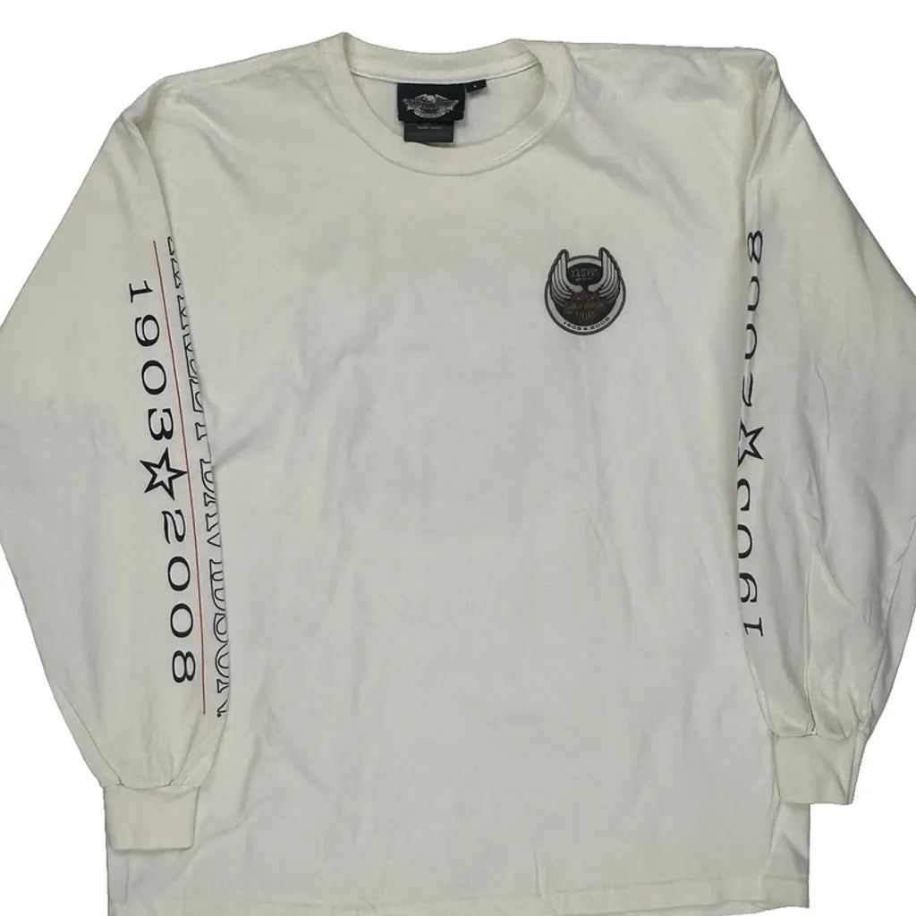 105Th Anniversary Harley Davidson Graphic Long Sleeve T-Shirt - Large Cream Cotton