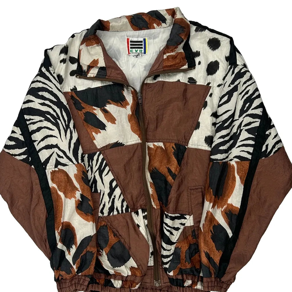 1980'S Evr Animal Print Shell Jacket - Medium Brown Polyester