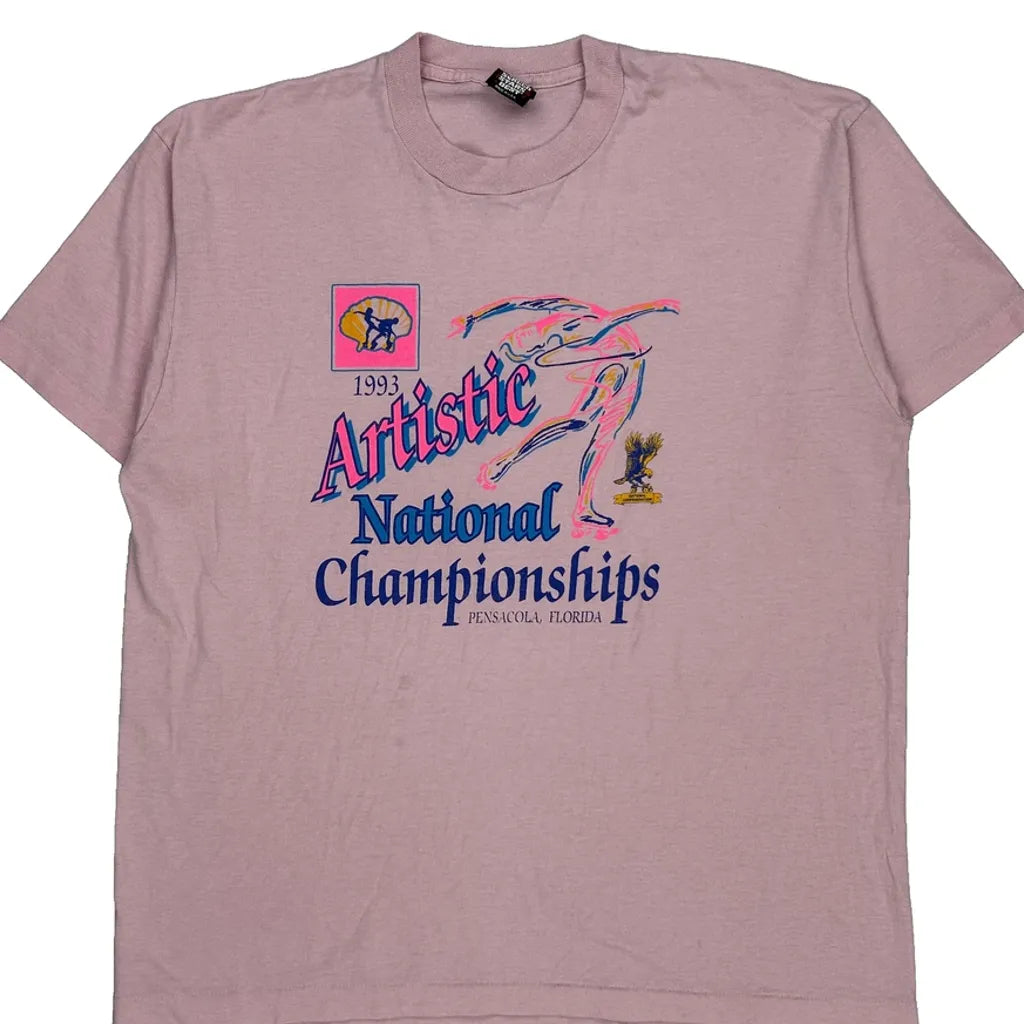 1993 Made In USA, Artistic National Championships Screen Stars Graphic T-Shirt - XL Pink Cotton Blend