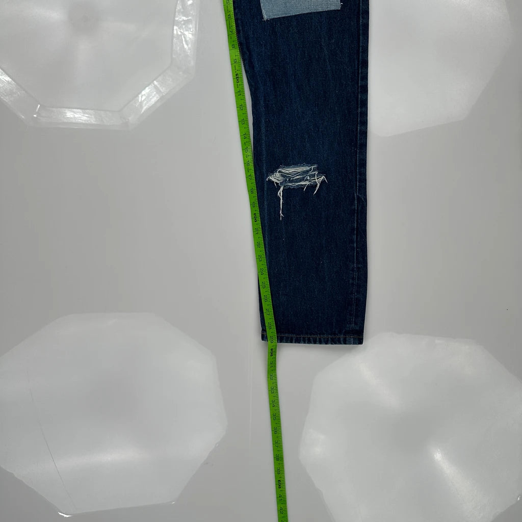 Distressed Jeans With Visible Patches And Rips