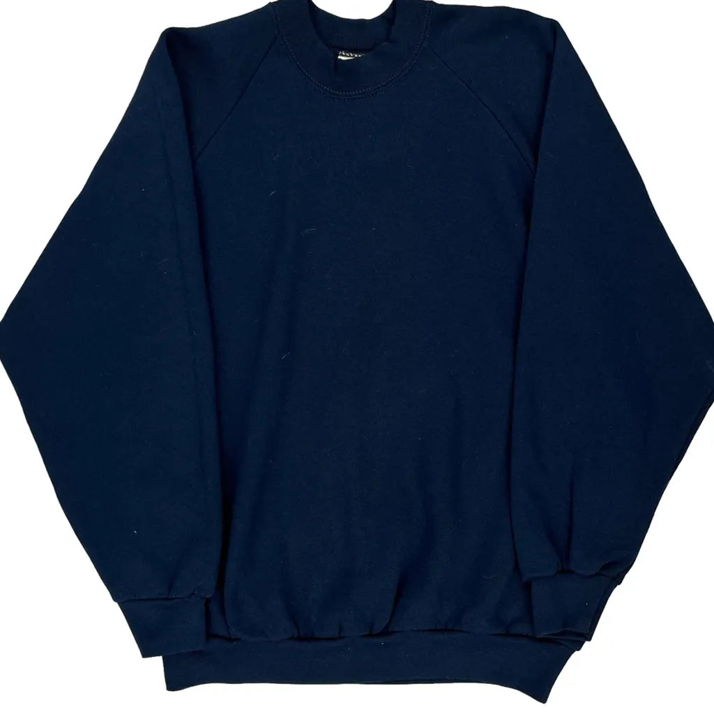 90S Blank Fruit Of The Loom Sweatshirt - Large Navy Cotton Blend