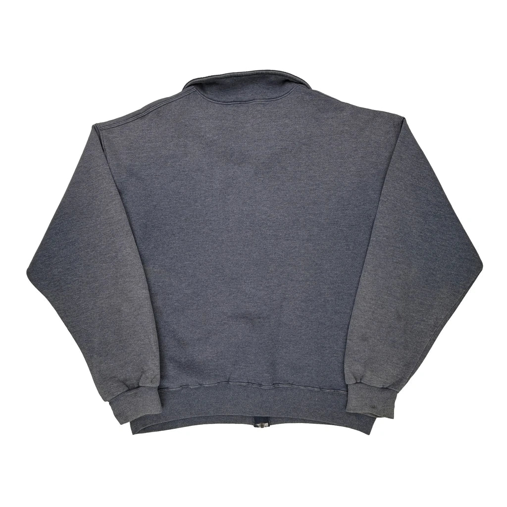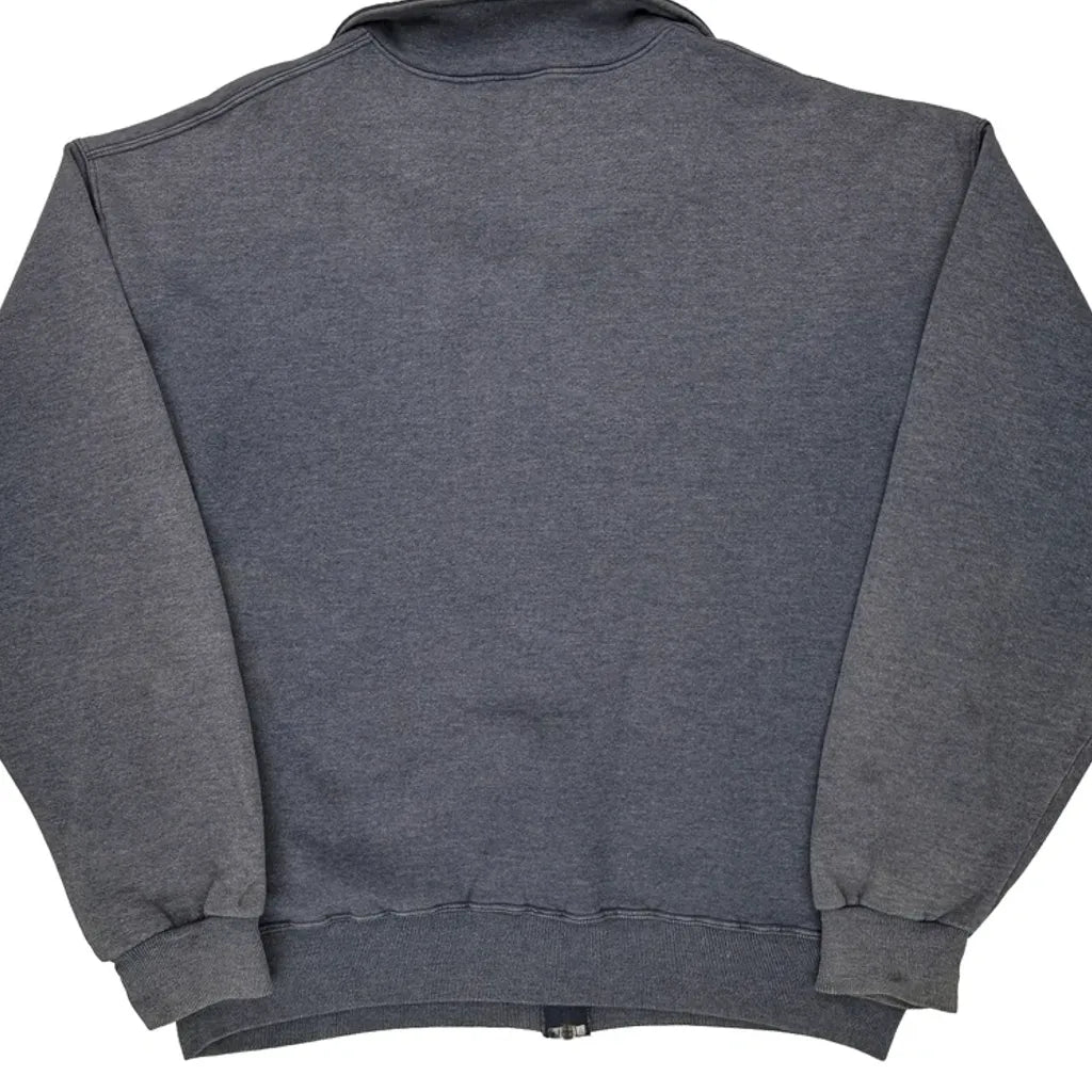 90S Blank Russell Athletic Zip Up - XL Grey Cotton Blend