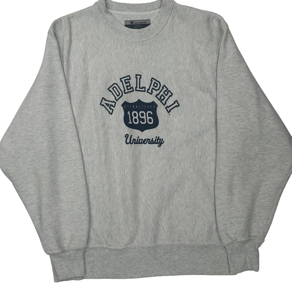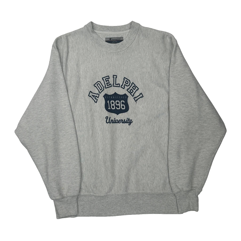 Adelphi University Champion College Sweatshirt - Small Grey Cotton Blend