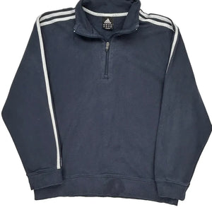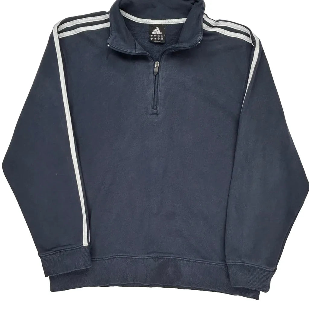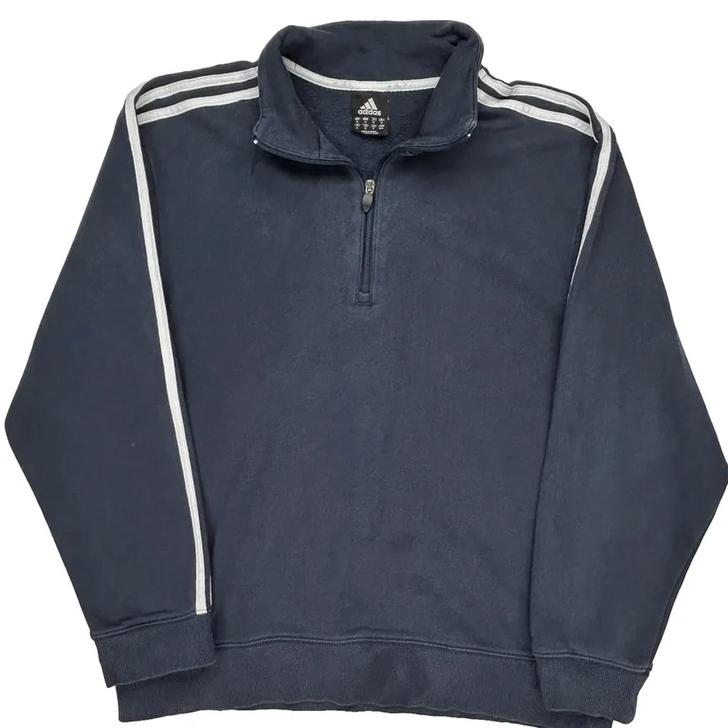 Adidas Striped 1/4 Zip - Medium Navy Cotton