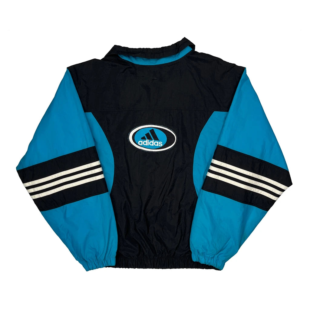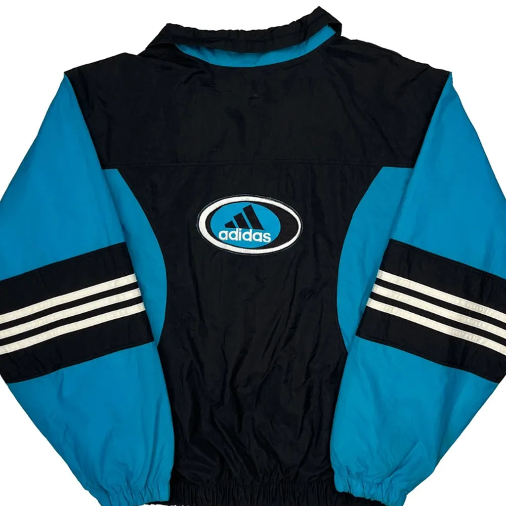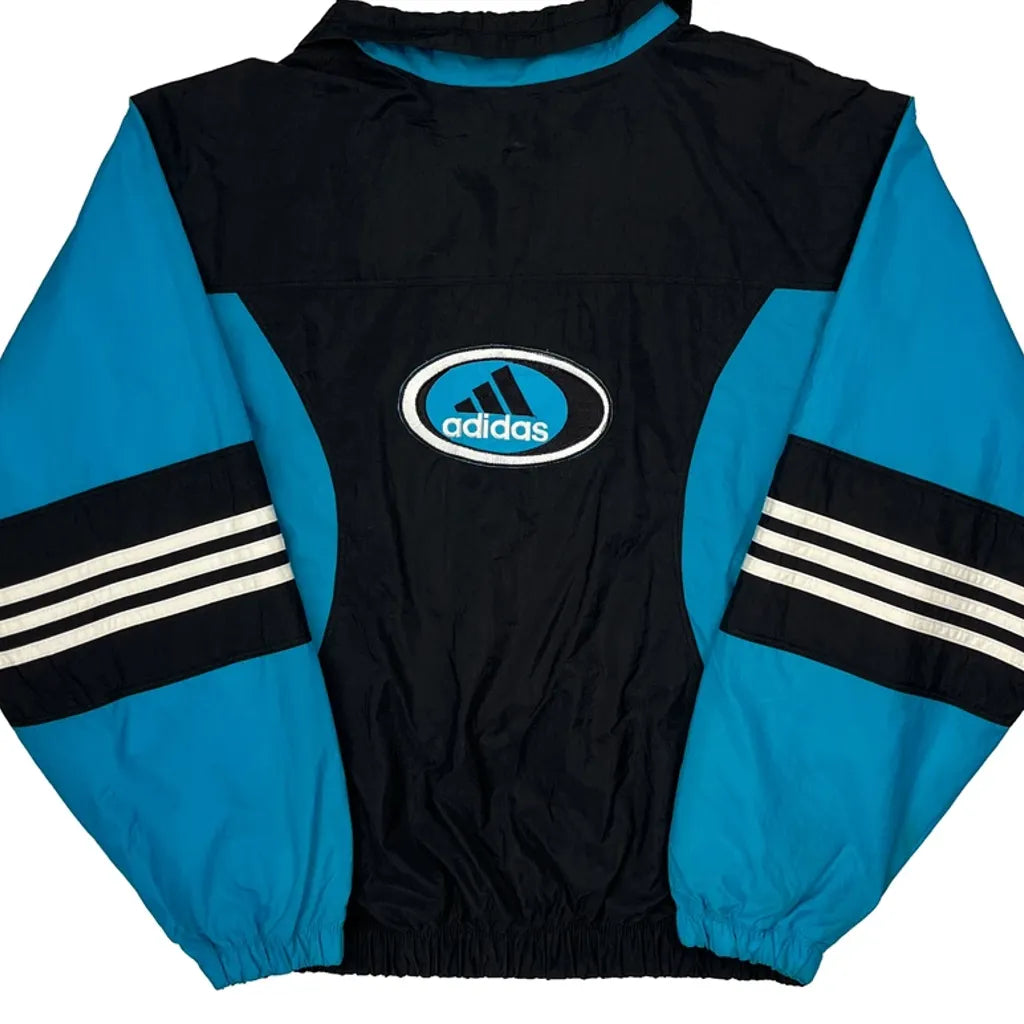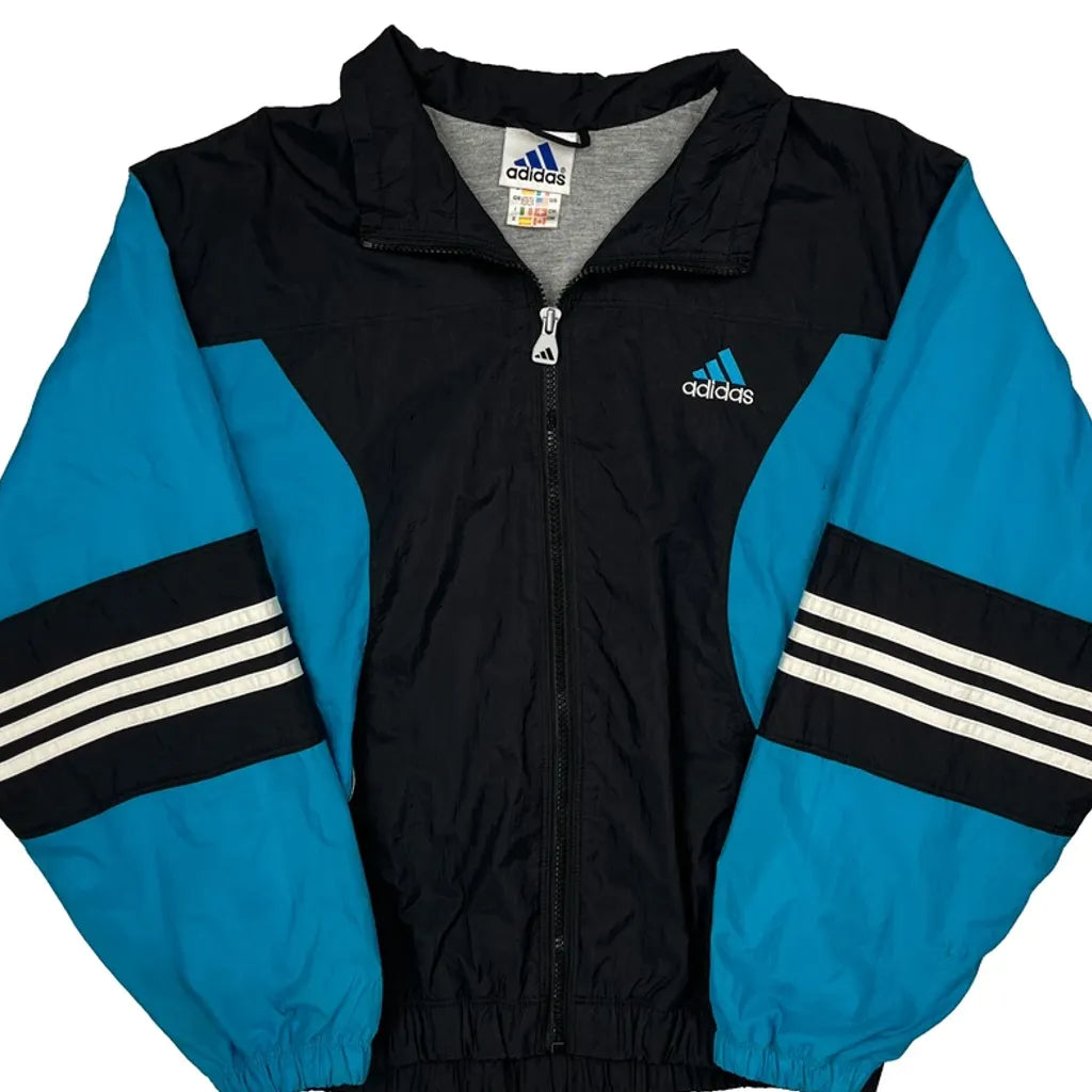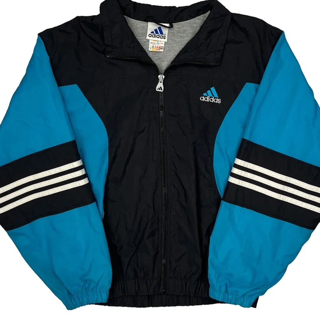 Blue And Black Adidas Windbreaker With Stripes On Sleeves