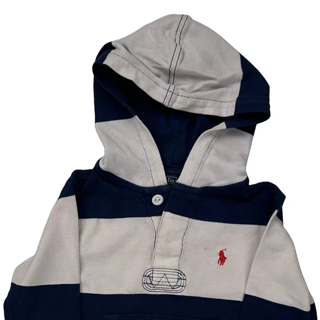 Navy And White Striped Rugby Shirt With Hood