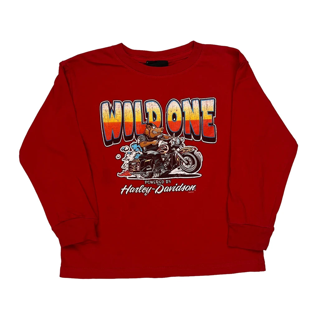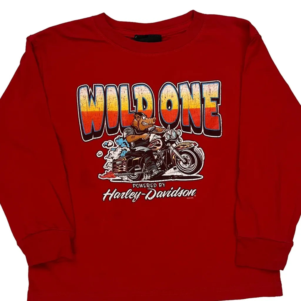 Age 5-6 Harley Davidson Graphic Long Sleeve T-Shirt - XS Red Cotton