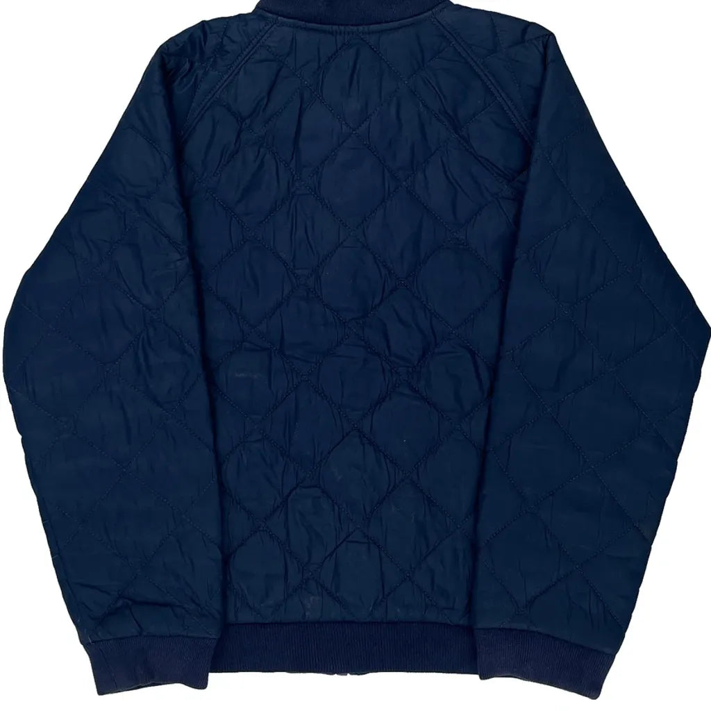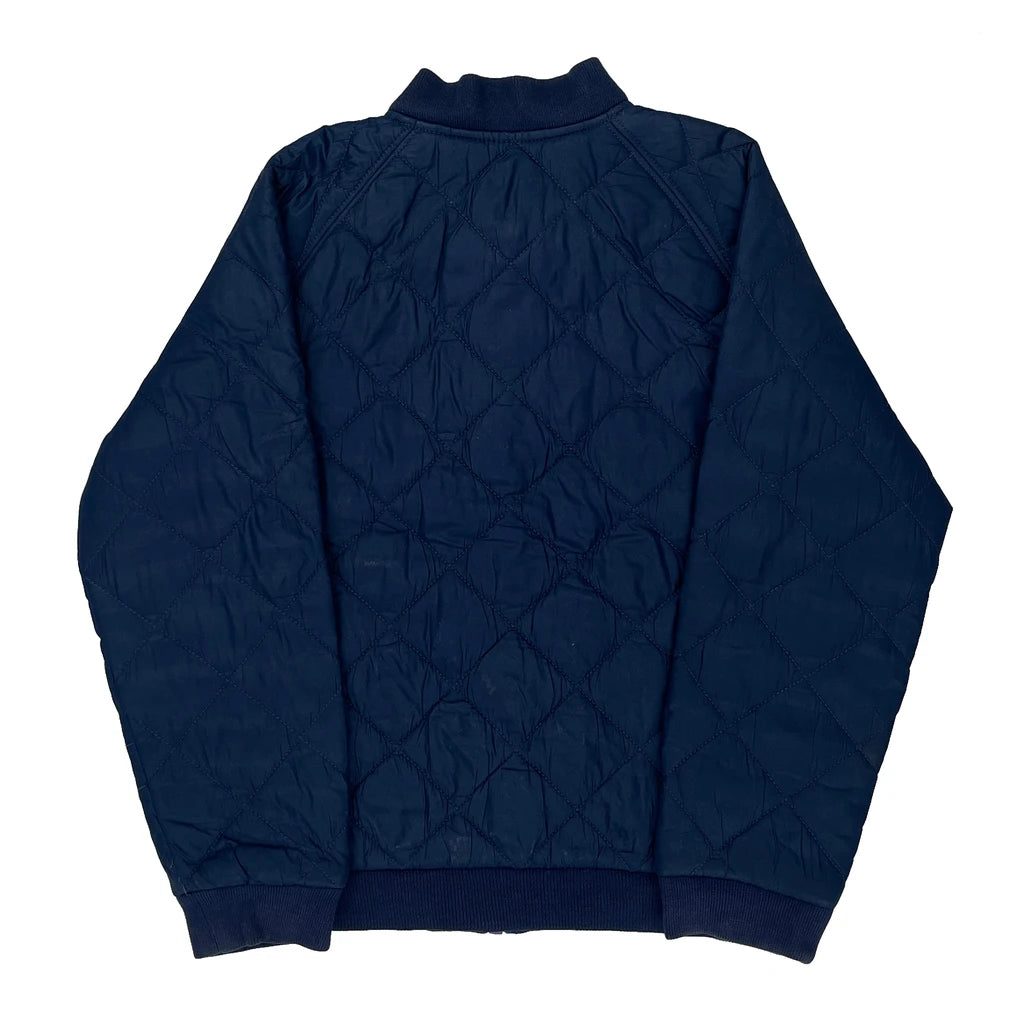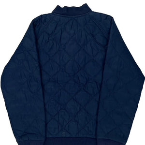 Navy Blue Quilted Bomber Jacket With Red Logo Embroidery
