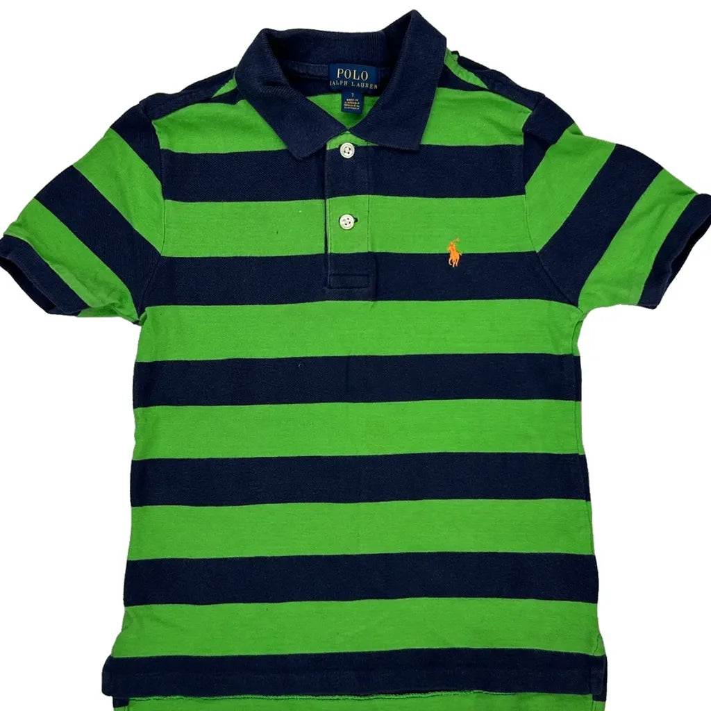 Age 7 Polo By Ralph Lauren Striped Polo Shirt - Small Green Cotton