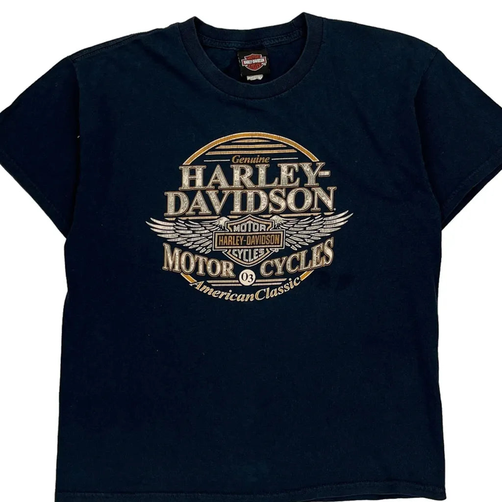American Classic Harley Davidson Graphic T-Shirt - Large Navy Cotton