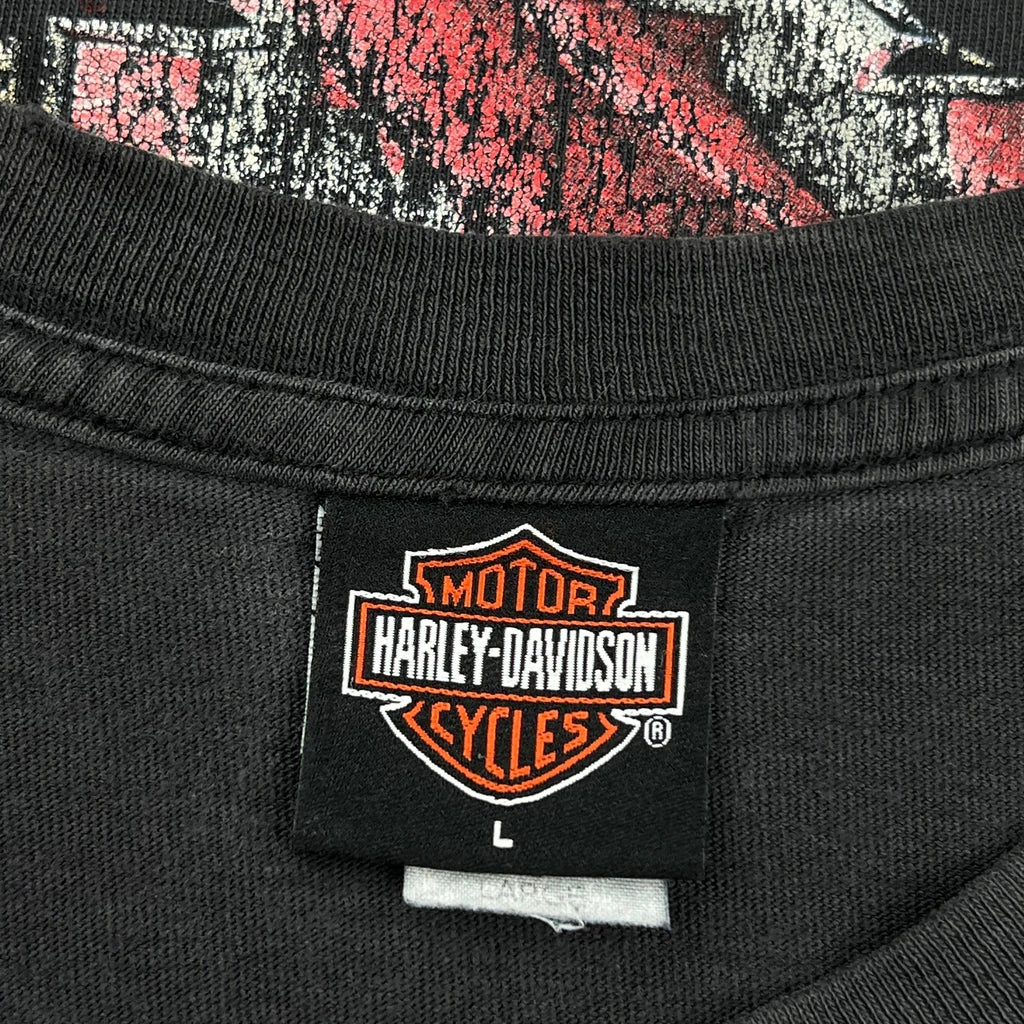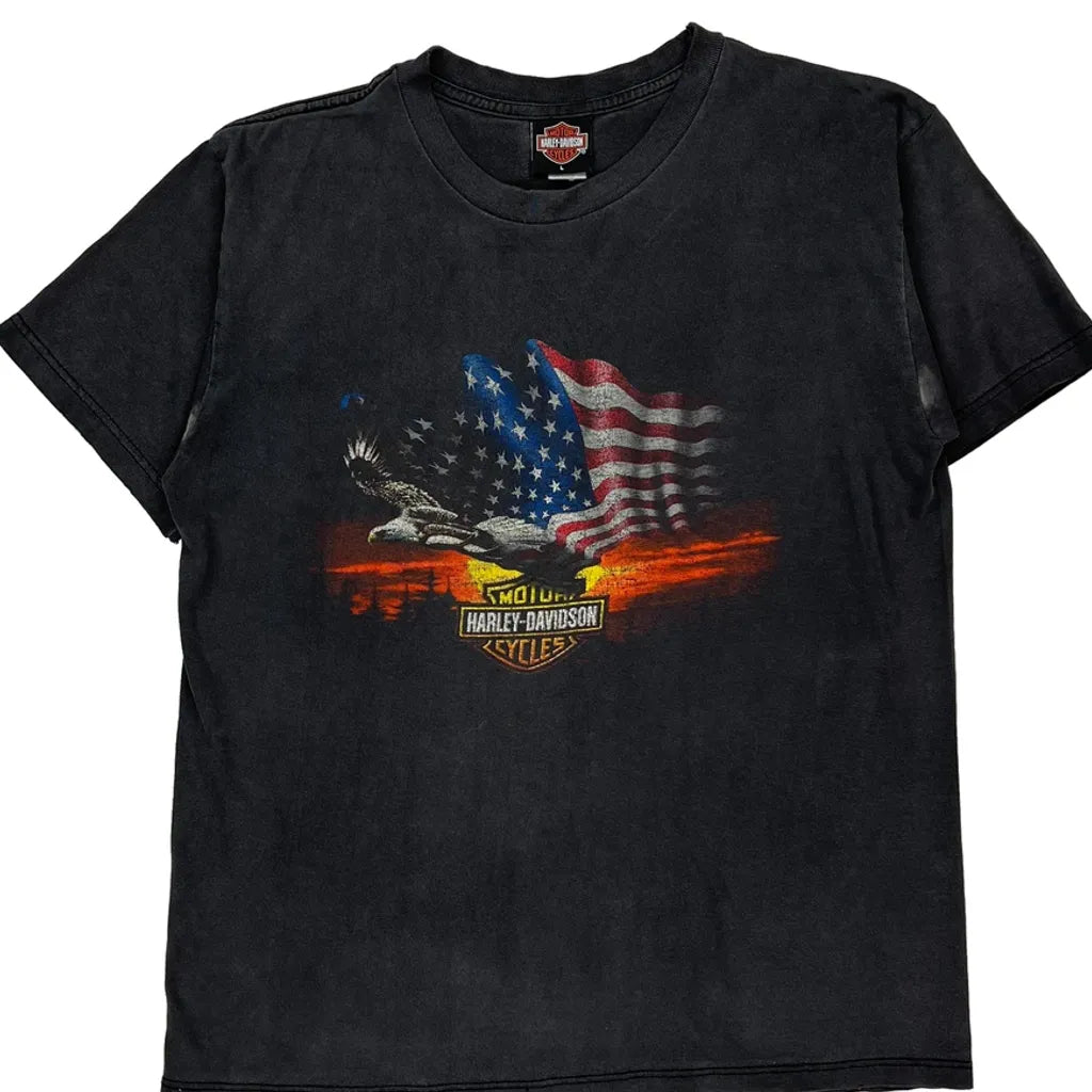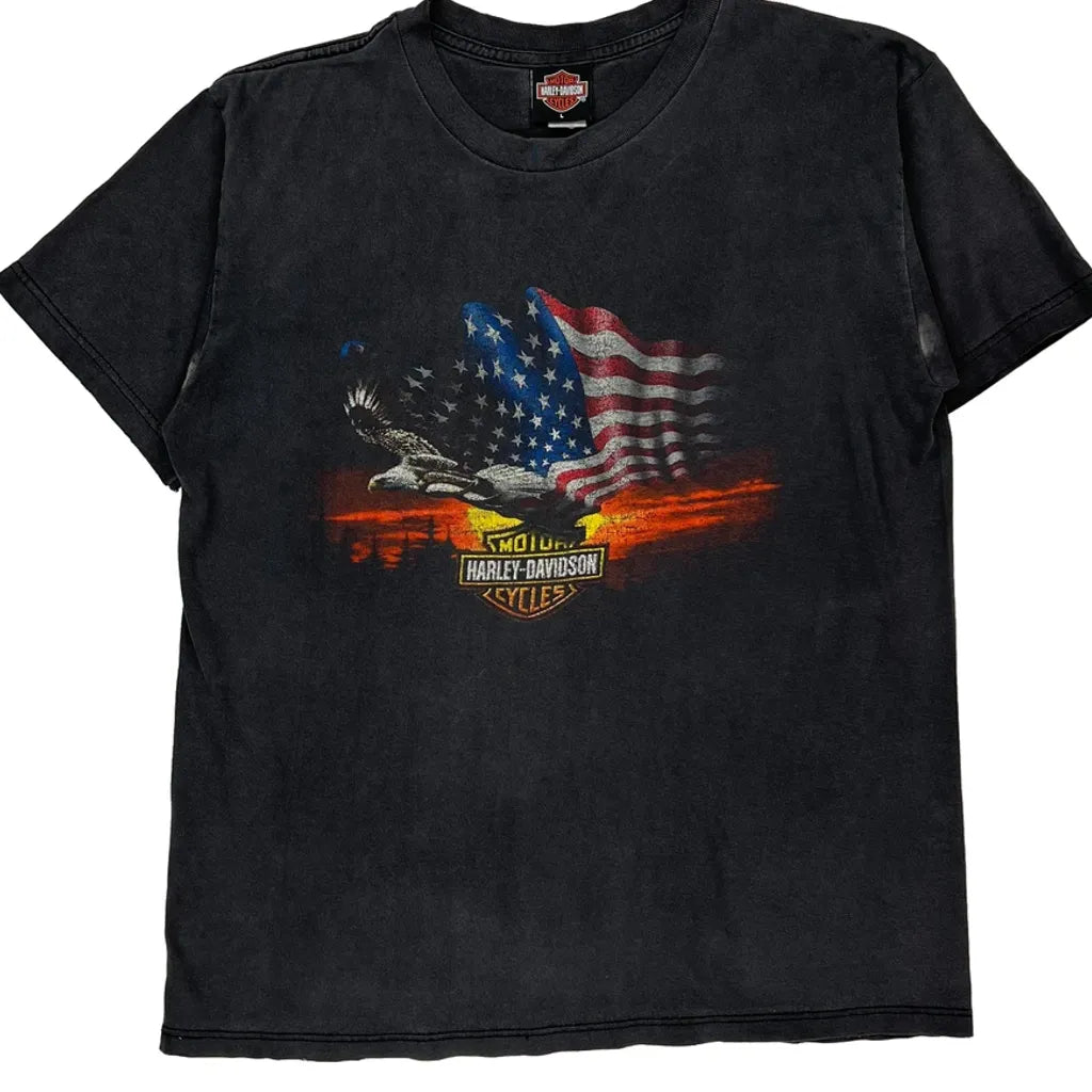 American Flag And Eagle Graphic Harley Davidson Graphic T-Shirt - Large Black Cotton