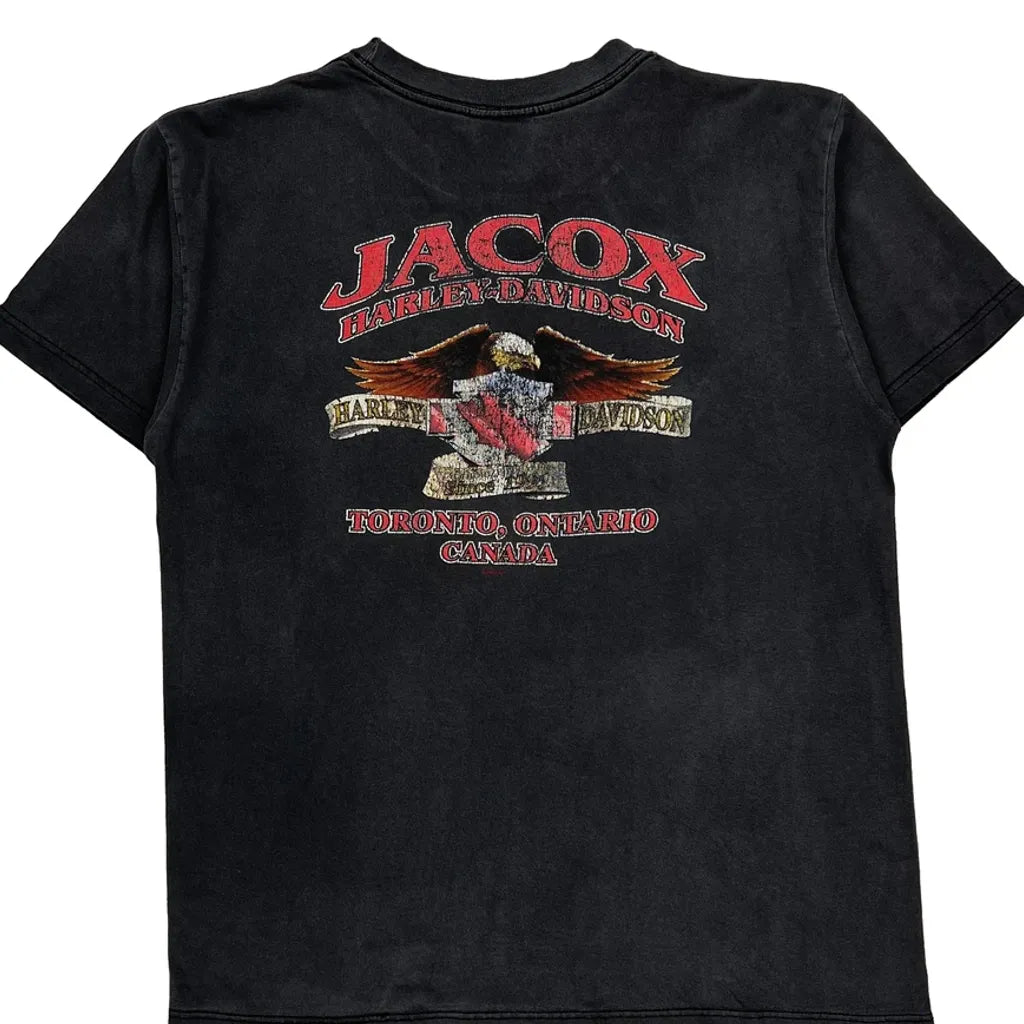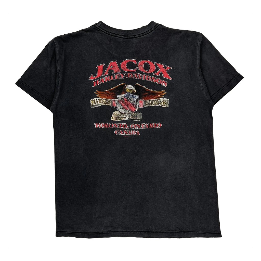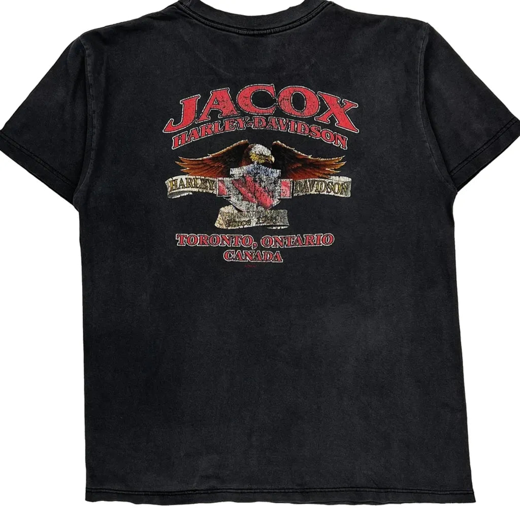 American Flag And Eagle Graphic Harley Davidson Graphic T-Shirt - Large Black Cotton