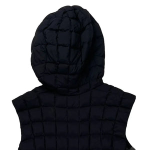 Hooded Black Quilted Gilet With Zipper Closure.
