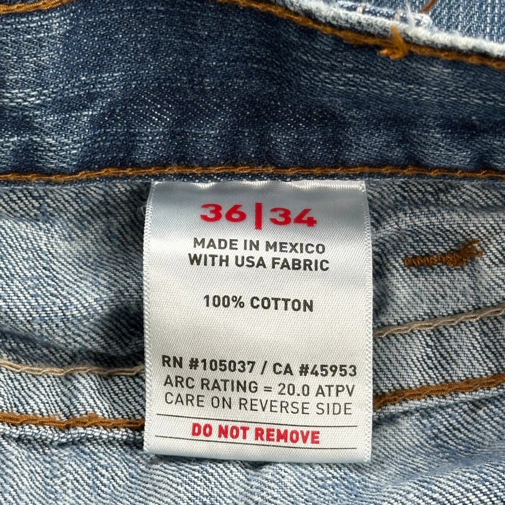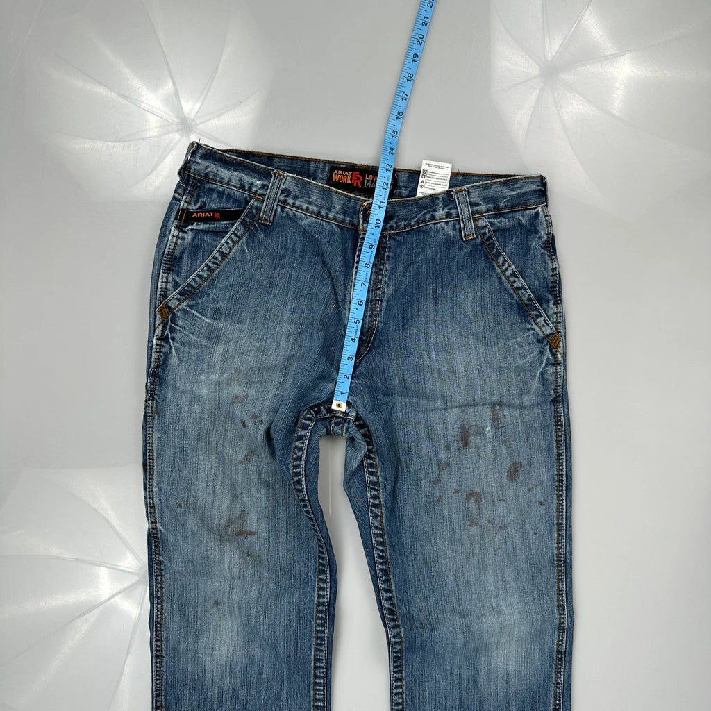 Ariat Carpenter Jeans, fit a 36″ Waist and 34″ inseam.