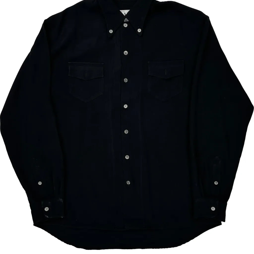 Black Button-Down Shirt With Two Chest Pockets.