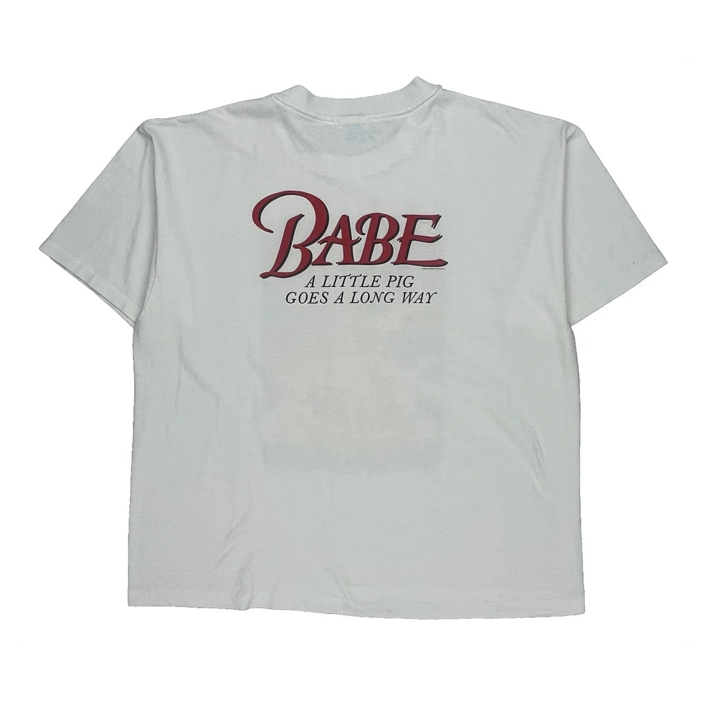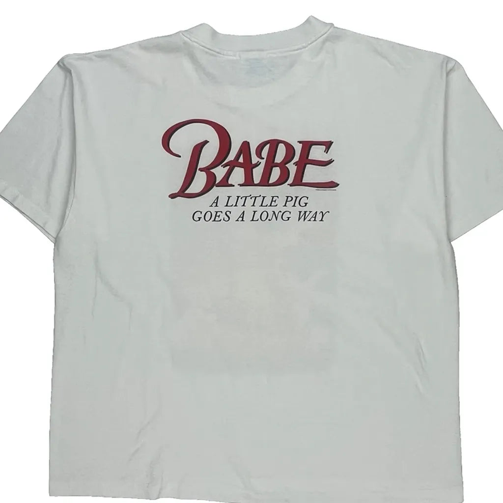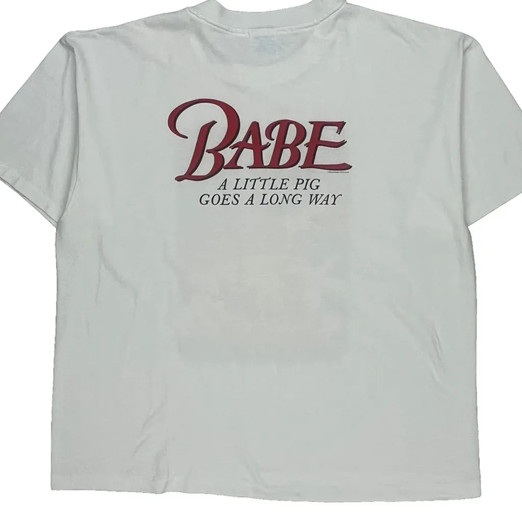 Babe Movie Print Hanes Graphic T-Shirt - XL White Cotton Blend