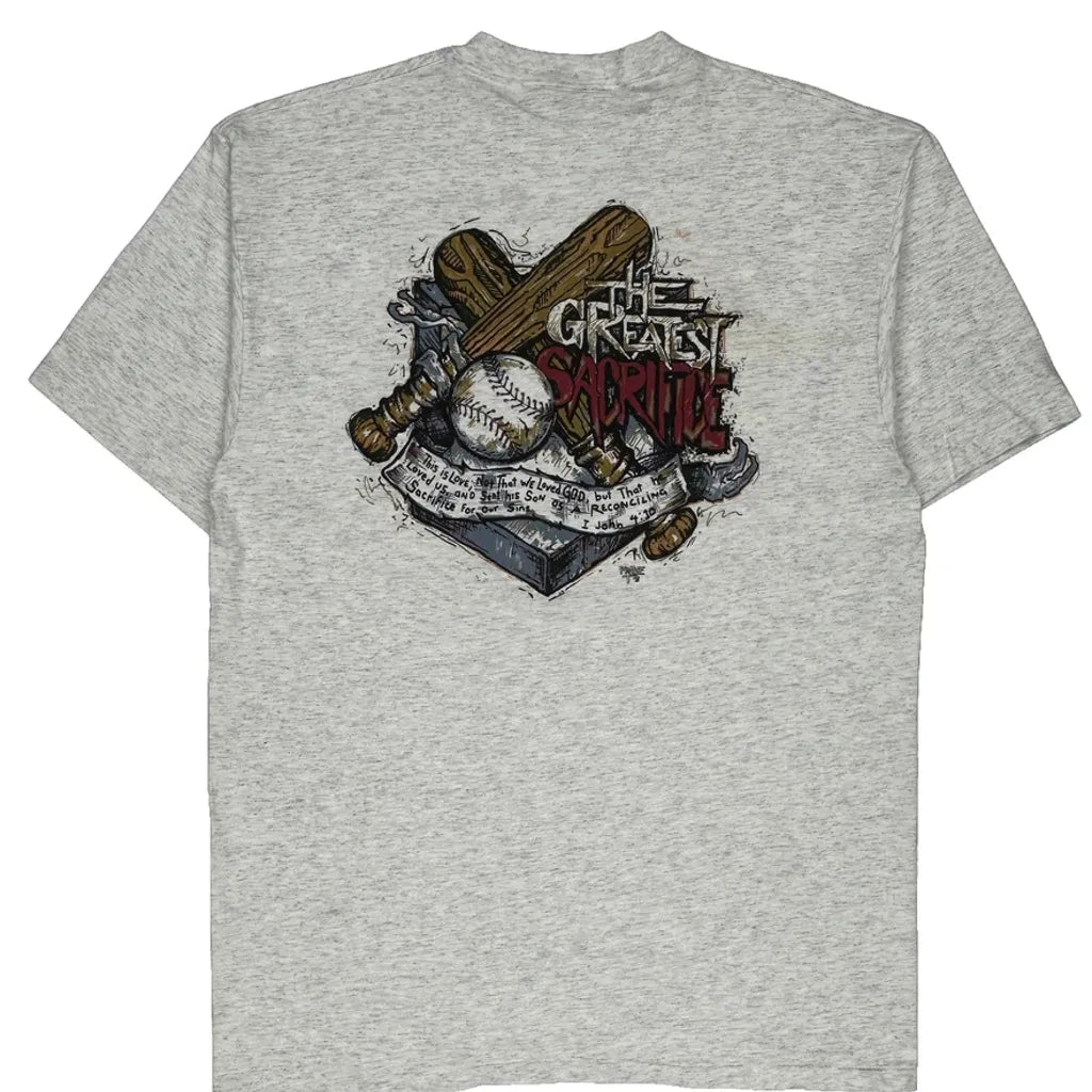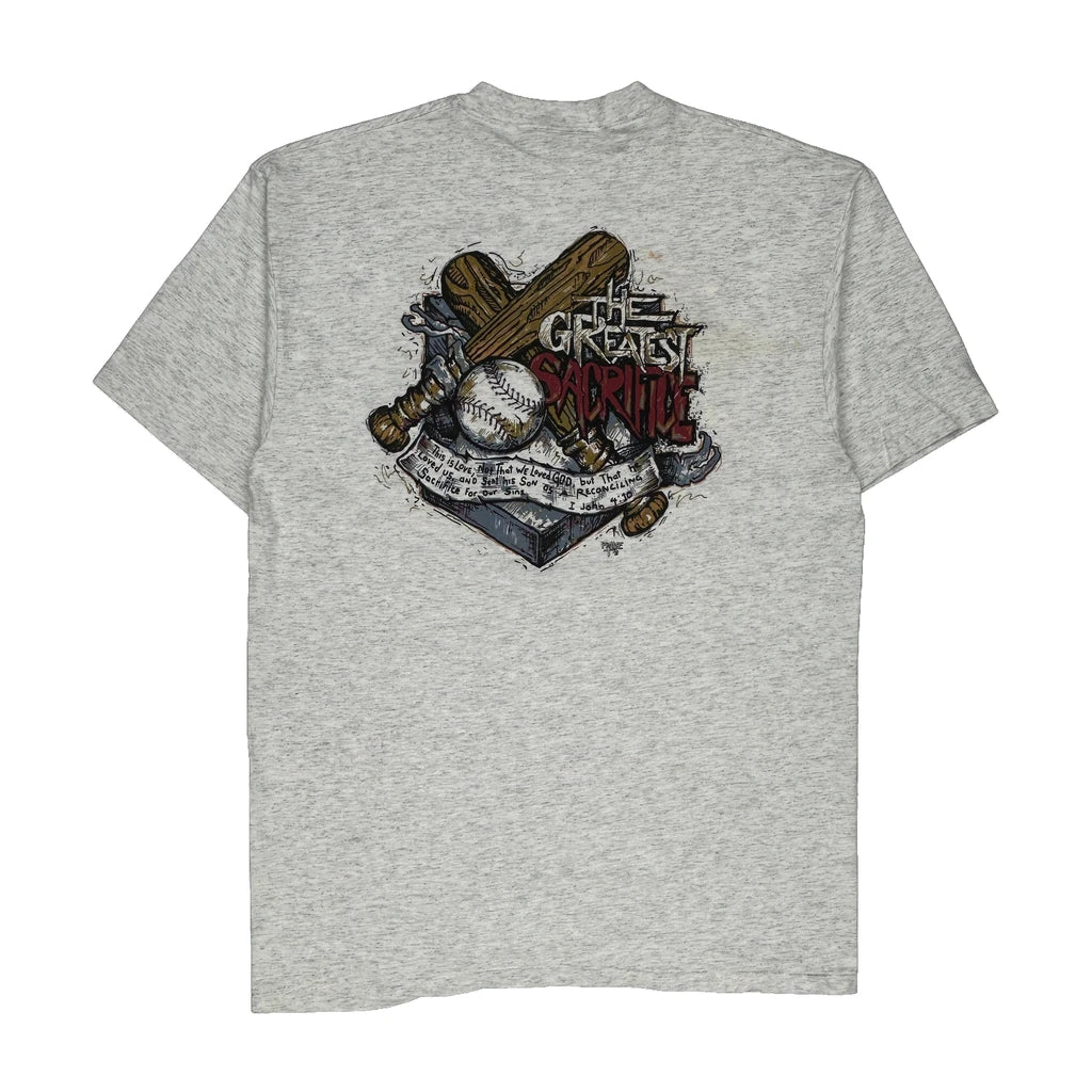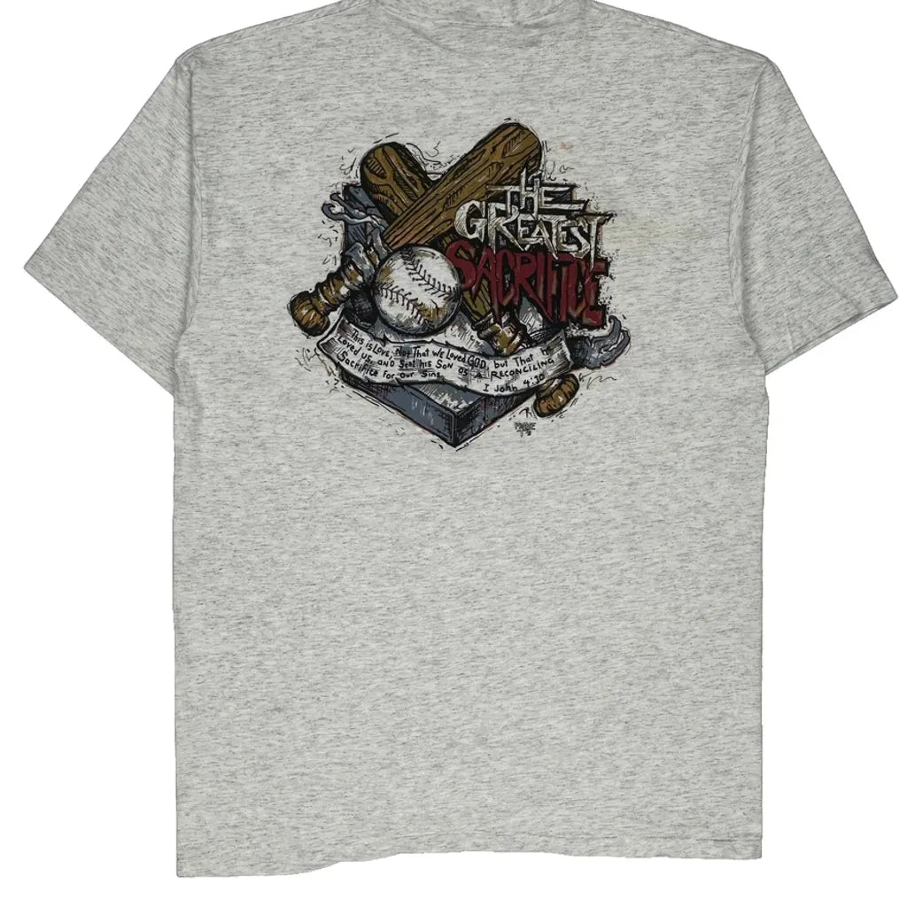 Baseball Oneita Graphic T-Shirt - XL Grey Cotton
