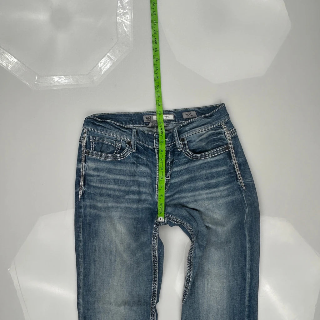 Bke Jeans, fit a 32″ Waist and 32″ inseam.