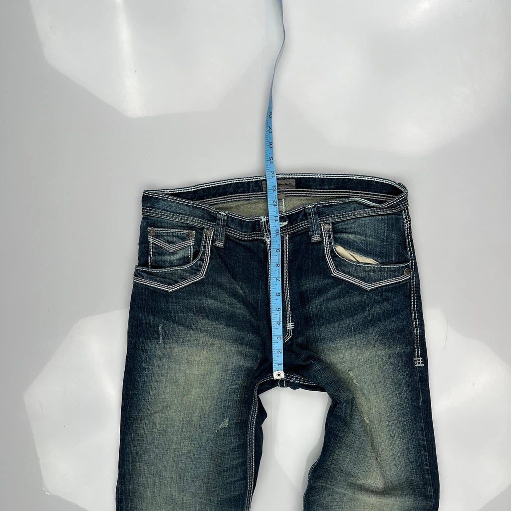 Bke Jeans, fit a 36″ Waist and 31″ inseam.