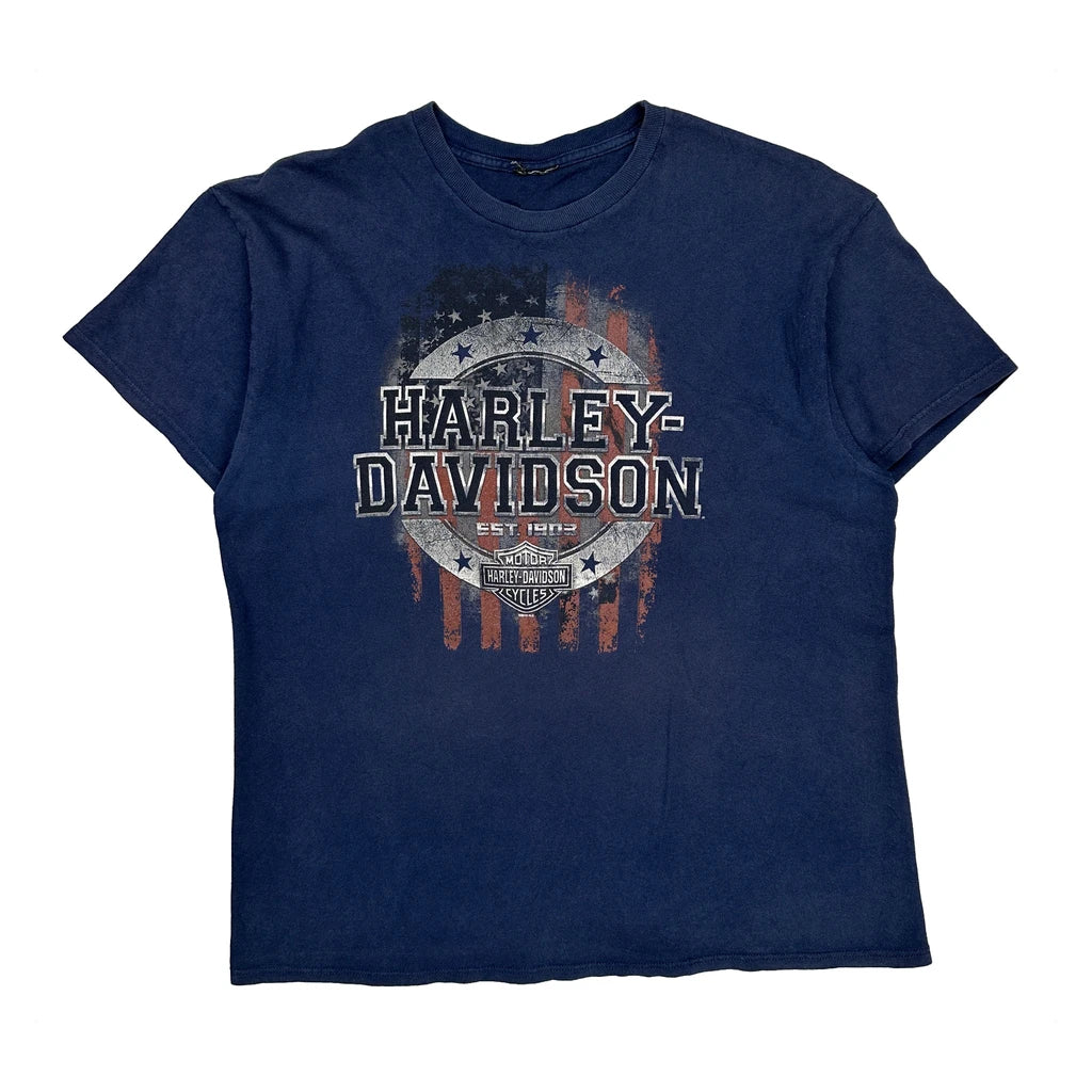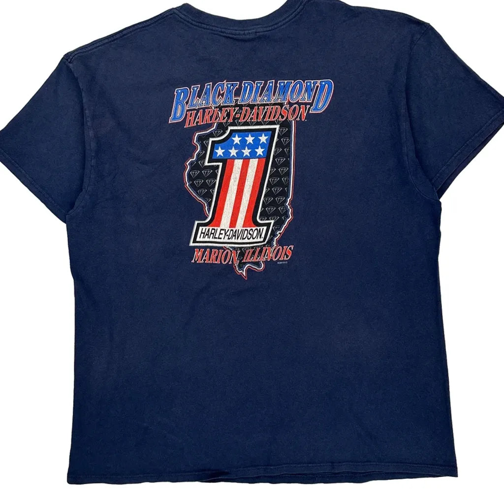Black Diamond Harley Davidson Graphic T-Shirt - Large Blue Cotton
