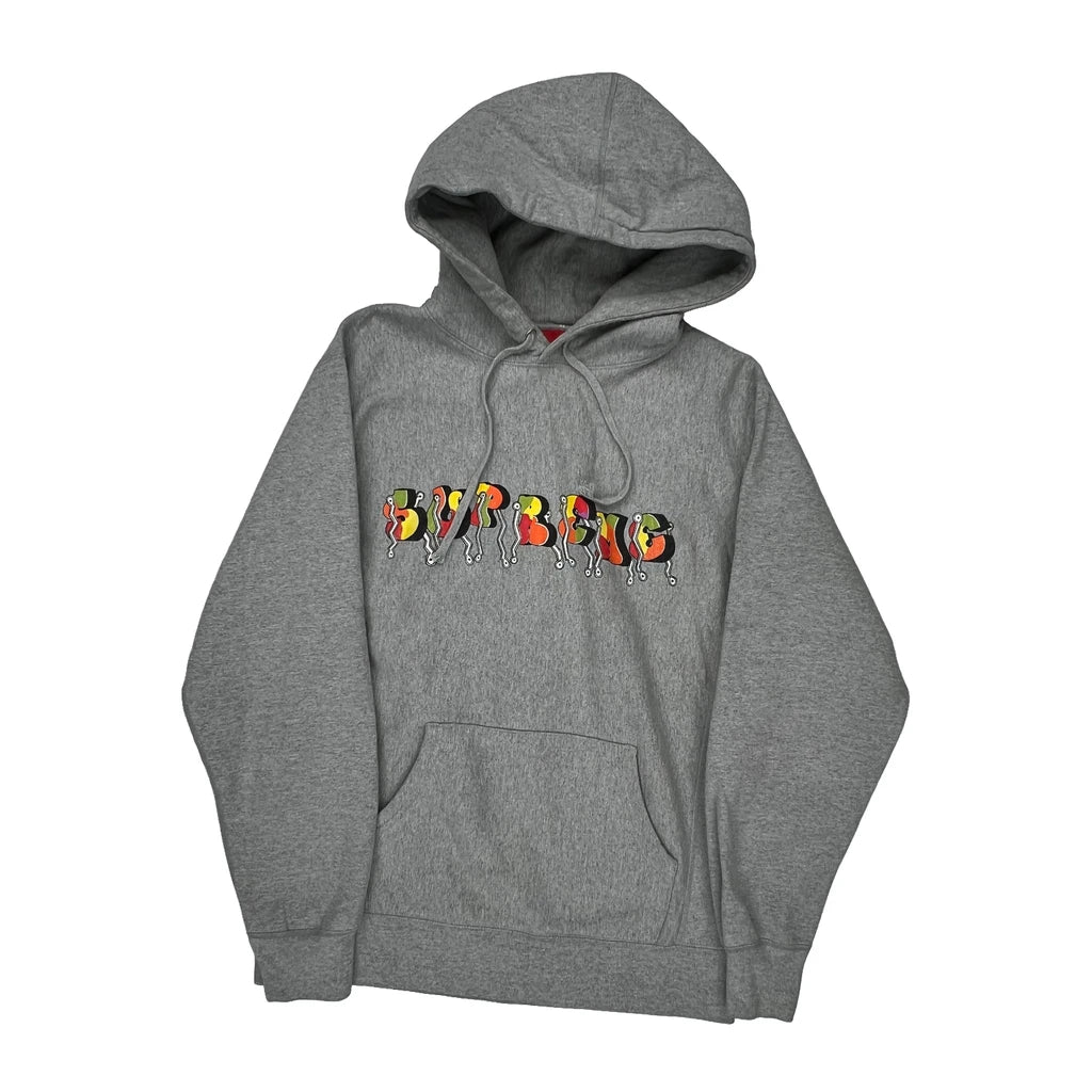 Supreme Grey Hoodie With Colorful Graphic Text