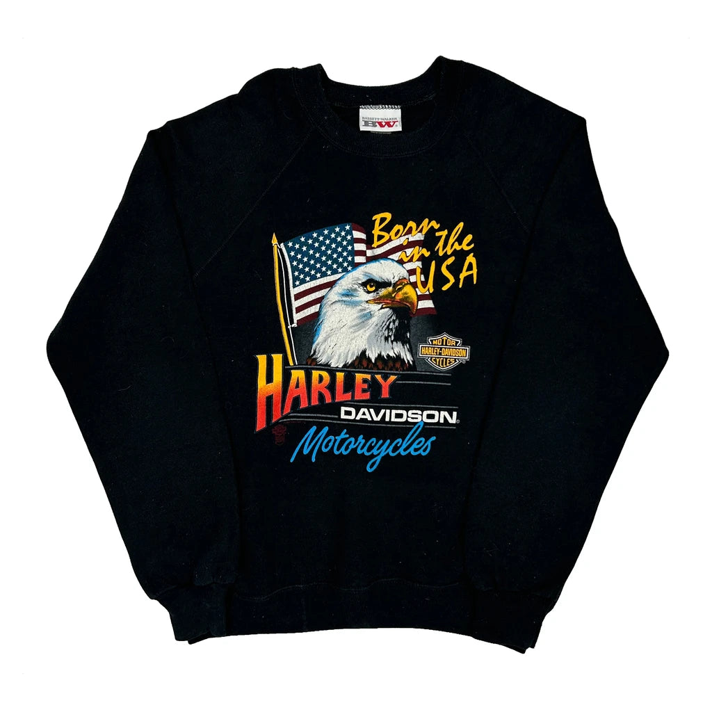 Born In The USA Harley Davidson Graphic Sweatshirt - XL Black Cotton