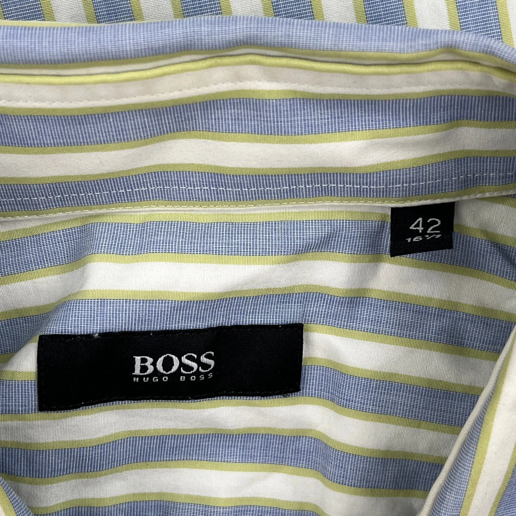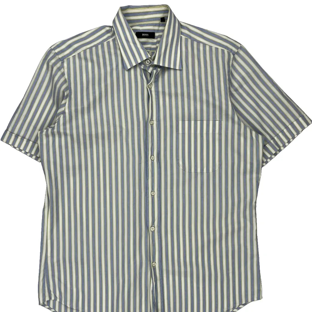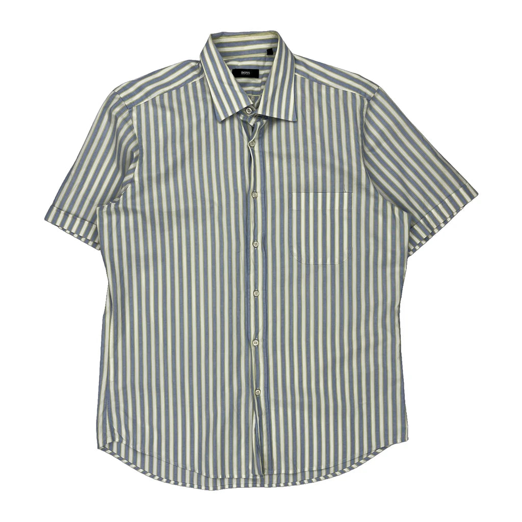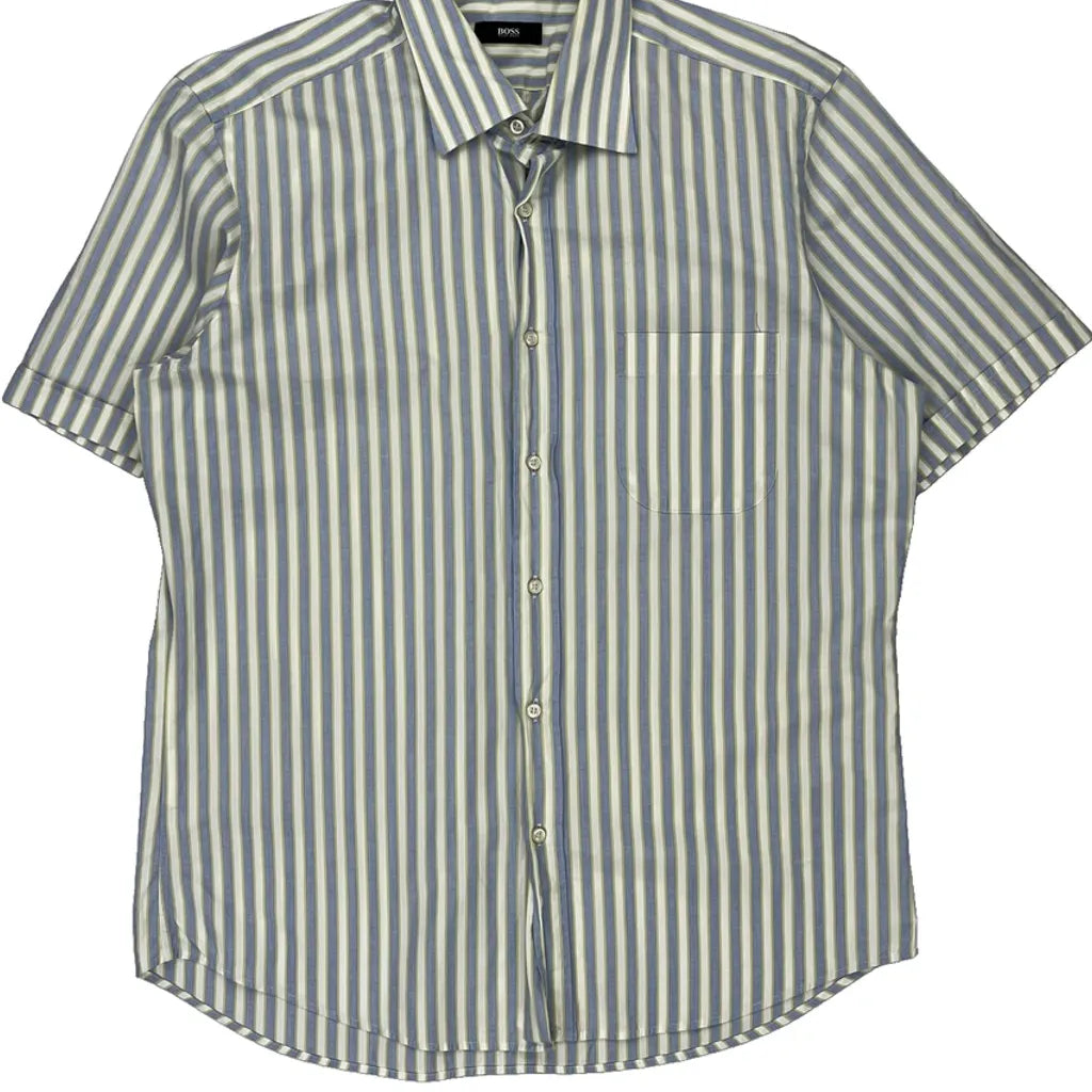 Boss Striped Short Sleeve Shirt - Large Blue Cotton