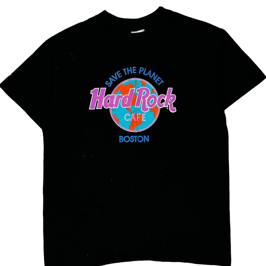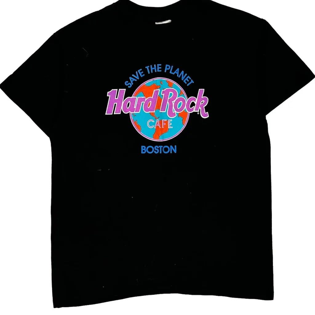 Boston Hard Rock Cafe Single Stitch T-Shirt - Large Black Cotton