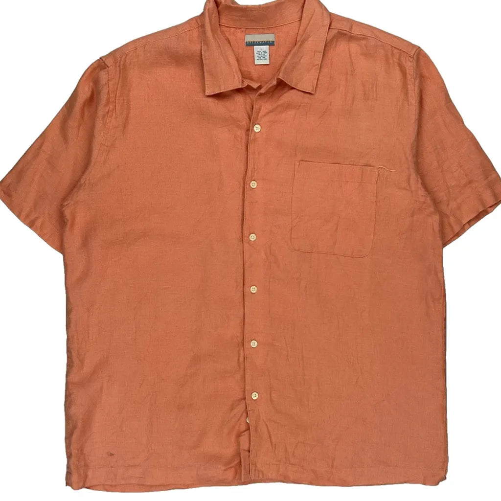 Breakwater Short Sleeve Shirt - Large Orange Linen