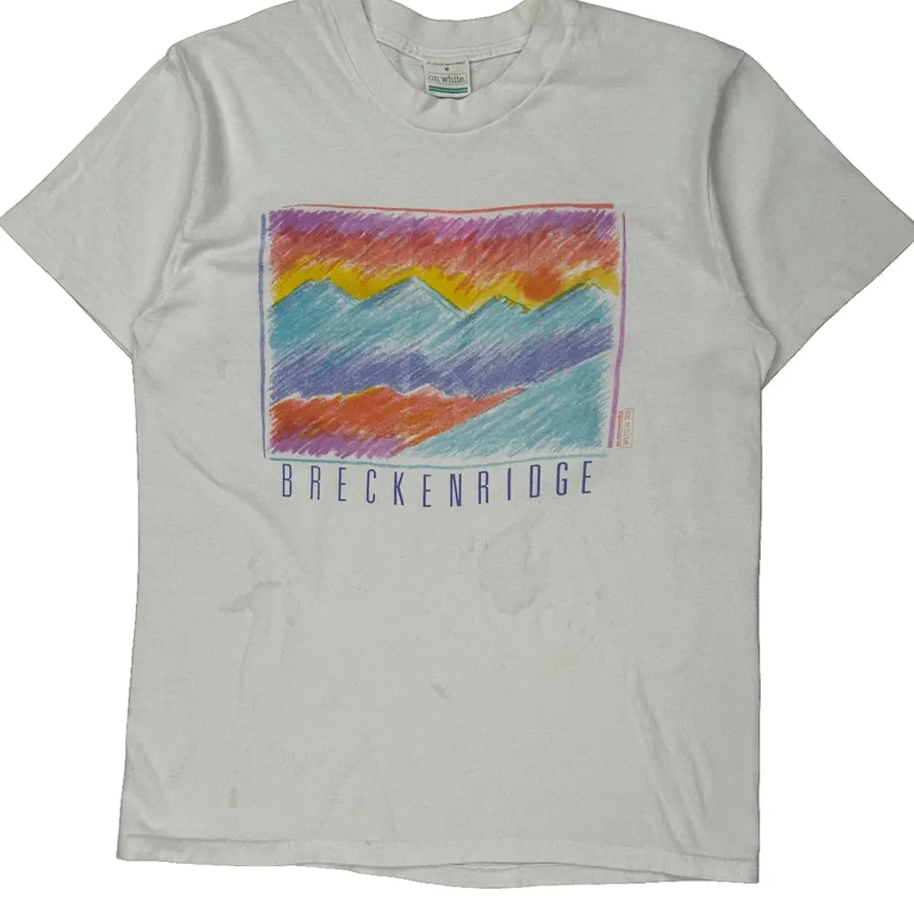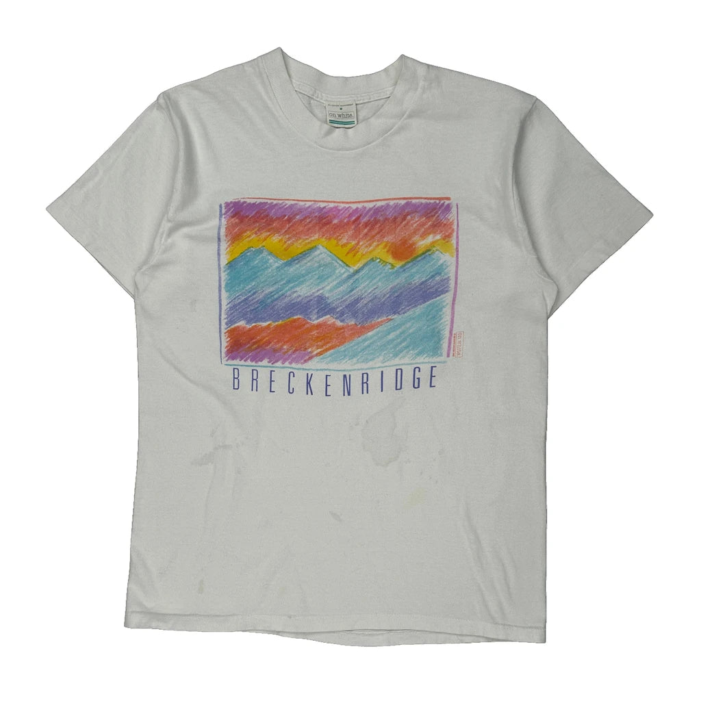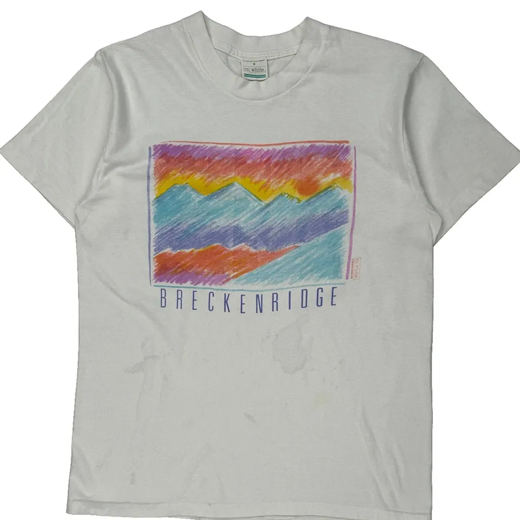 Breckenridge Unbranded Graphic T-Shirt - Medium White Cotton