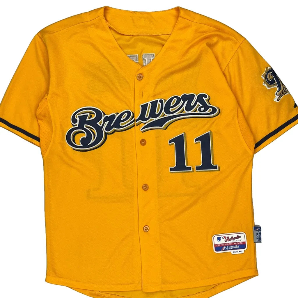 Brewers Majestic Mlb Jersey - Medium Yellow Polyester