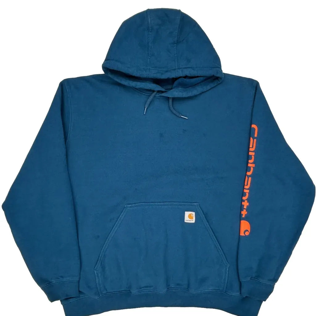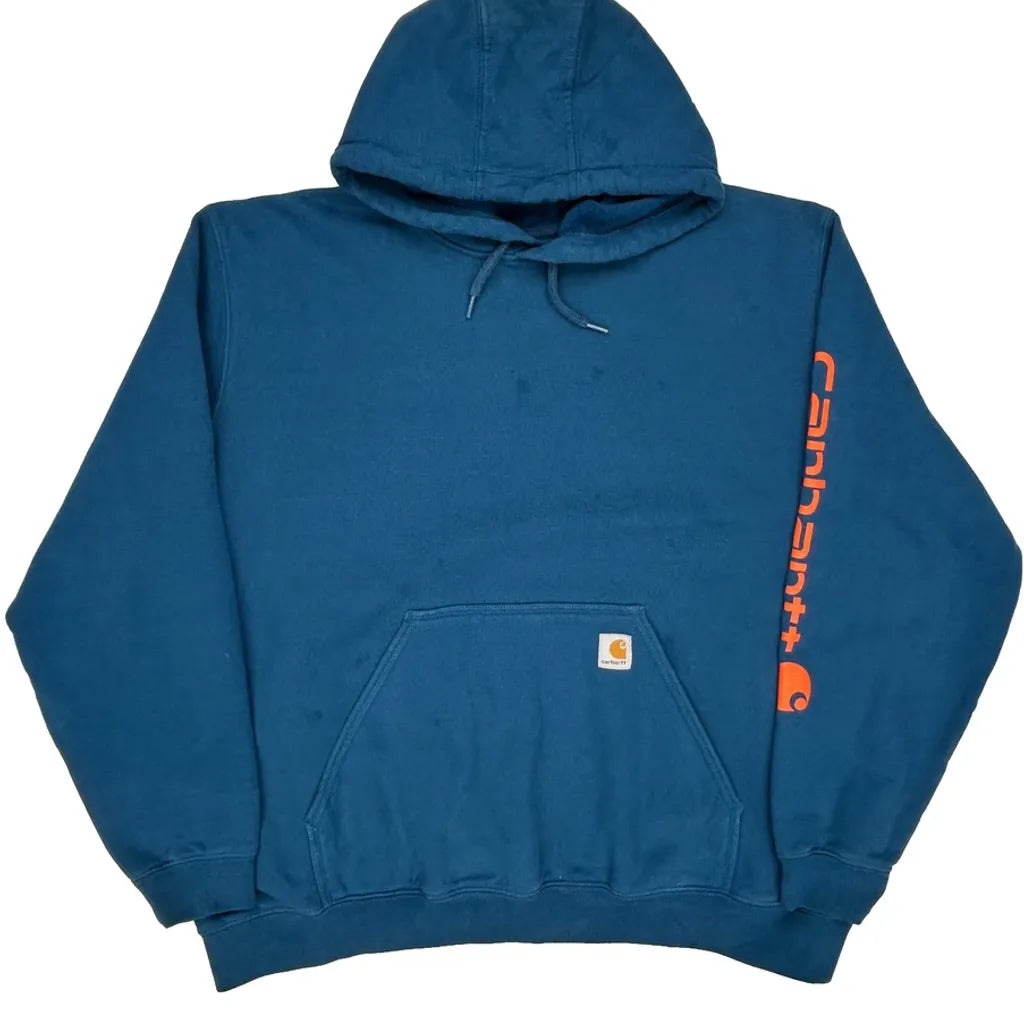 Carhartt Spellout Hoodie - 2XL Blue Cotton