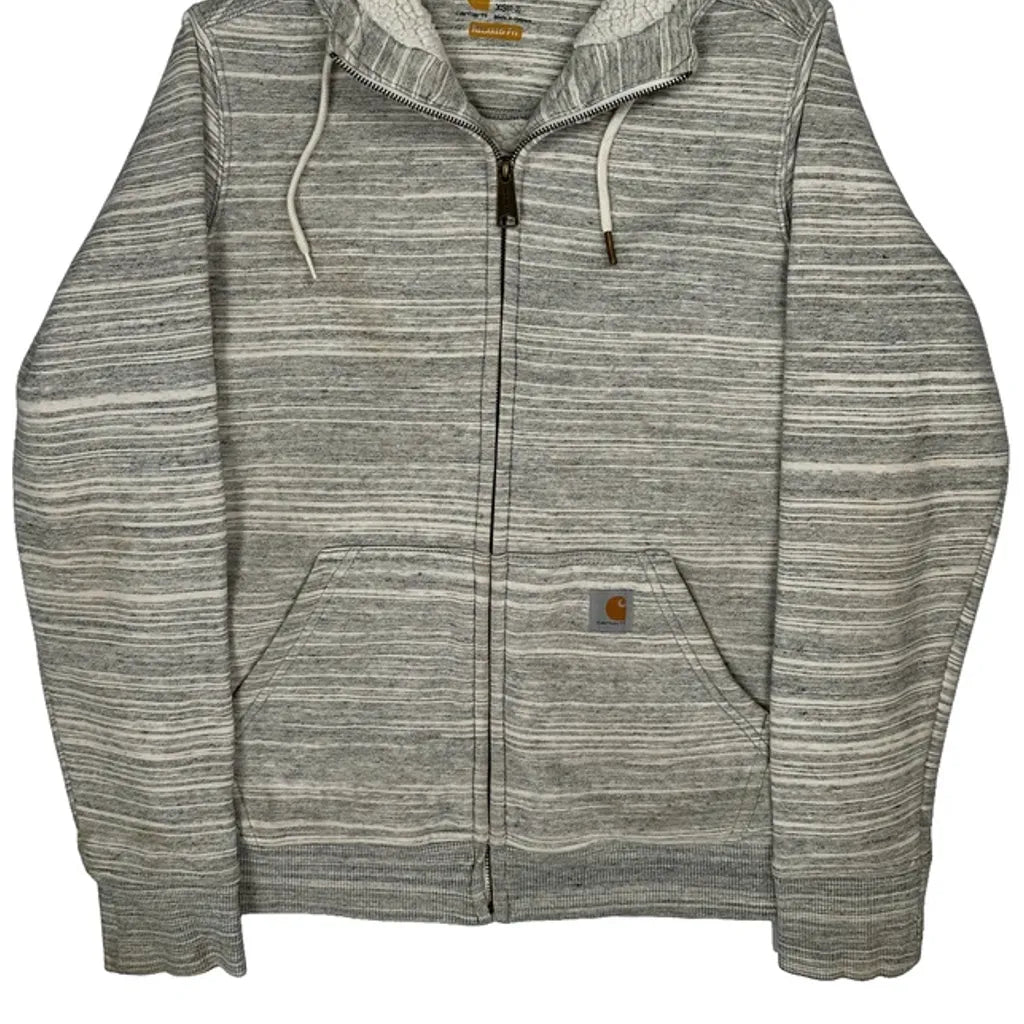 Carhartt Striped Hoodie - XS Grey Cotton Blend
