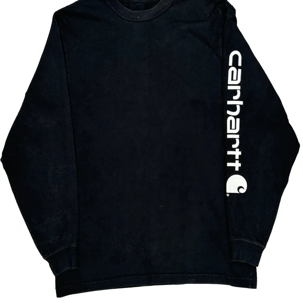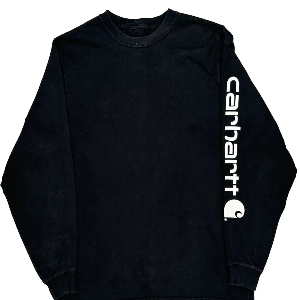 Carhartt Spellout Long Sleeve T-Shirt - Small Black Cotton