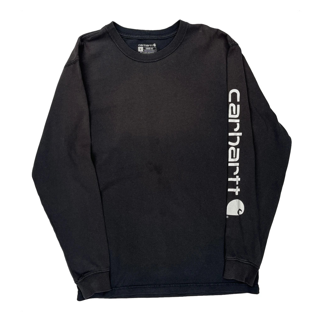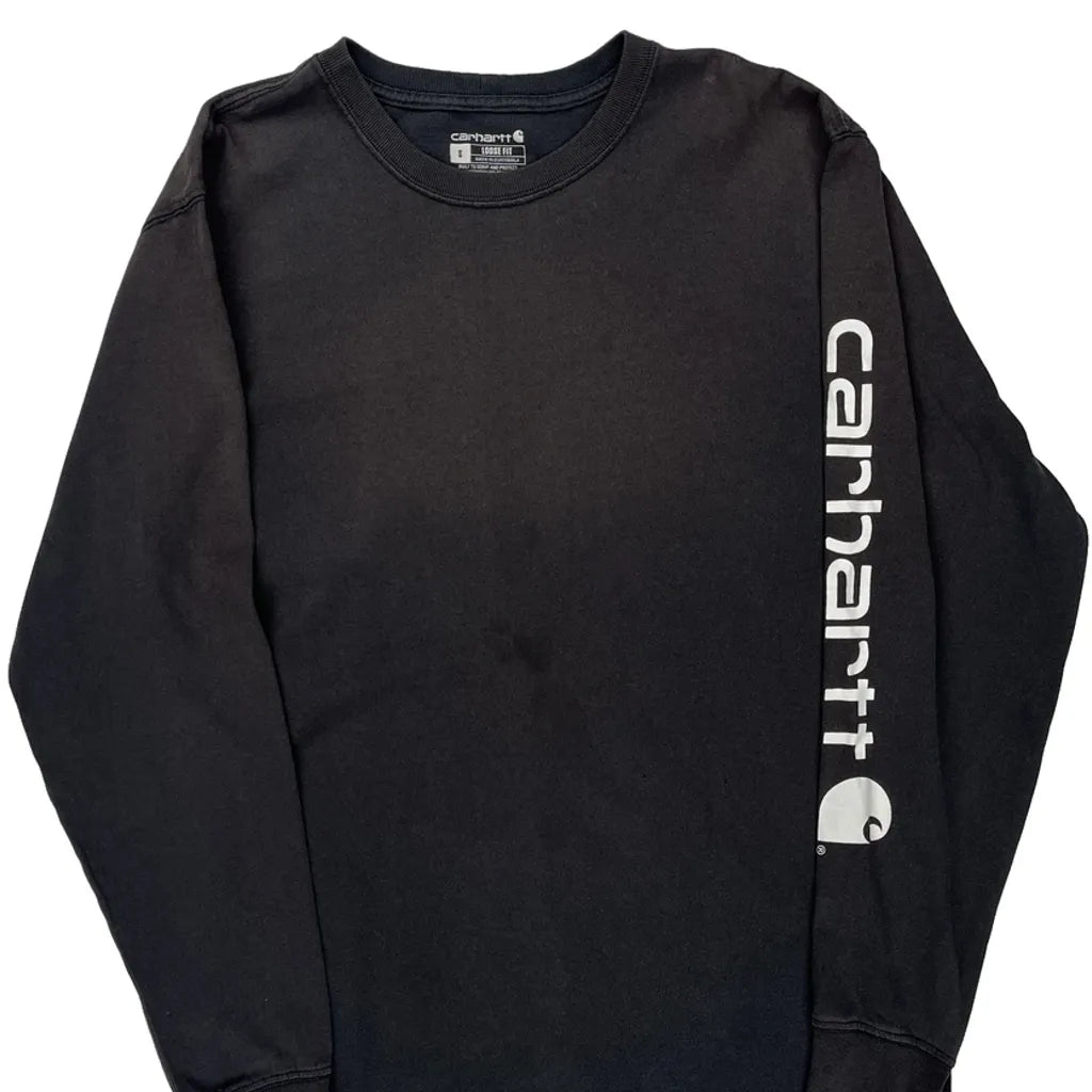 Carhartt Spellout Long Sleeve T-Shirt - Small Black Cotton