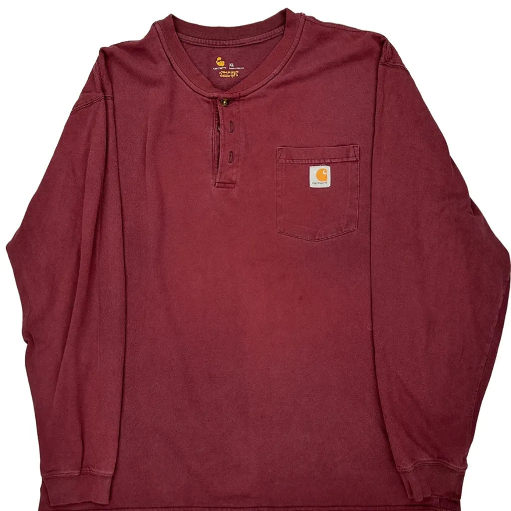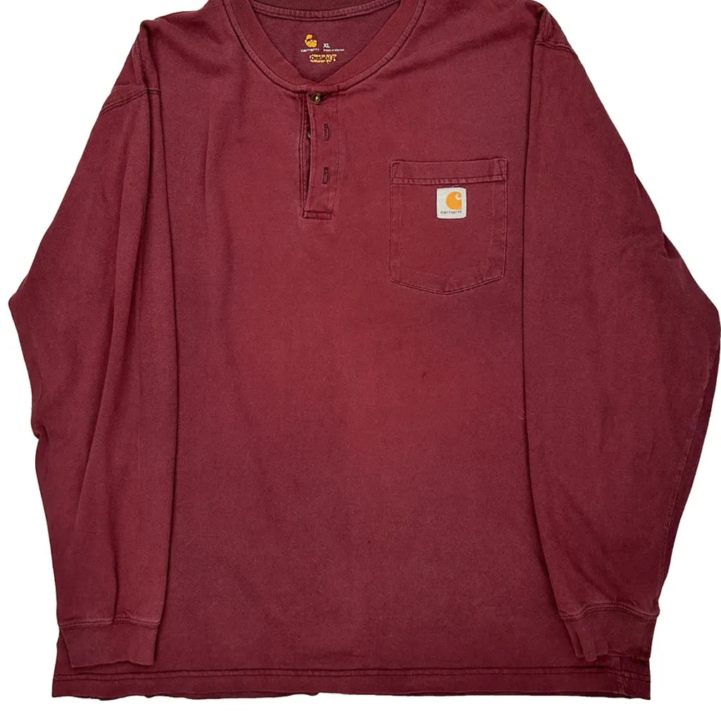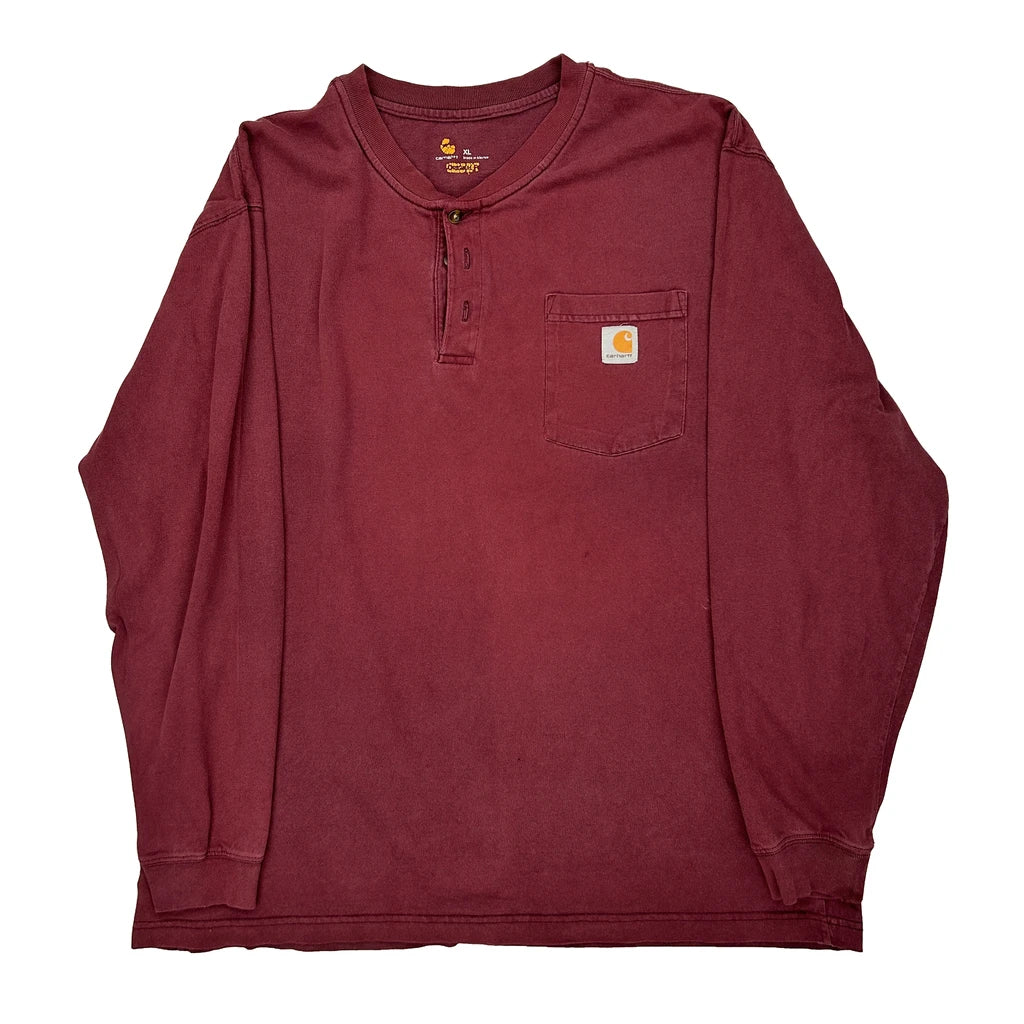 Carhartt Long Sleeve T-Shirt - XL Burgundy Cotton