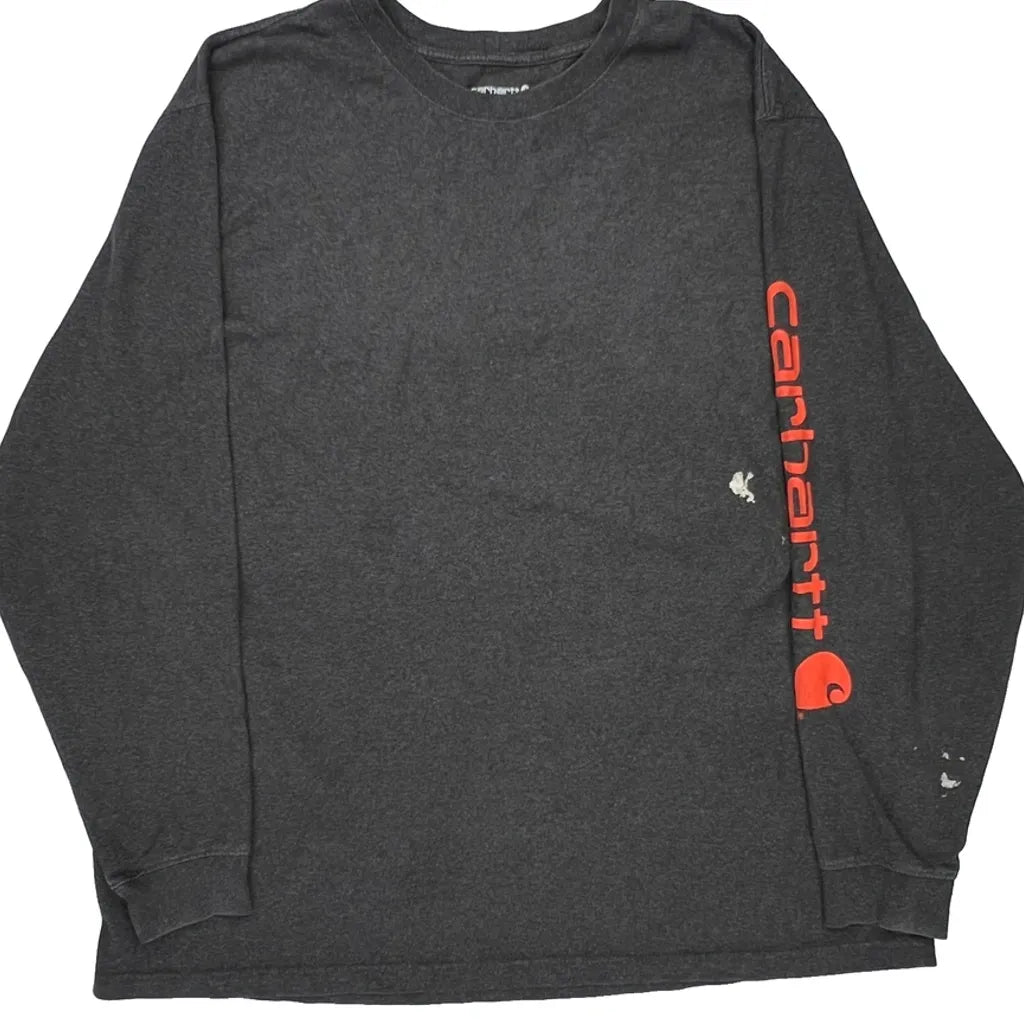 Carhartt Spellout Long Sleeve T-Shirt - 2XL Grey Cotton