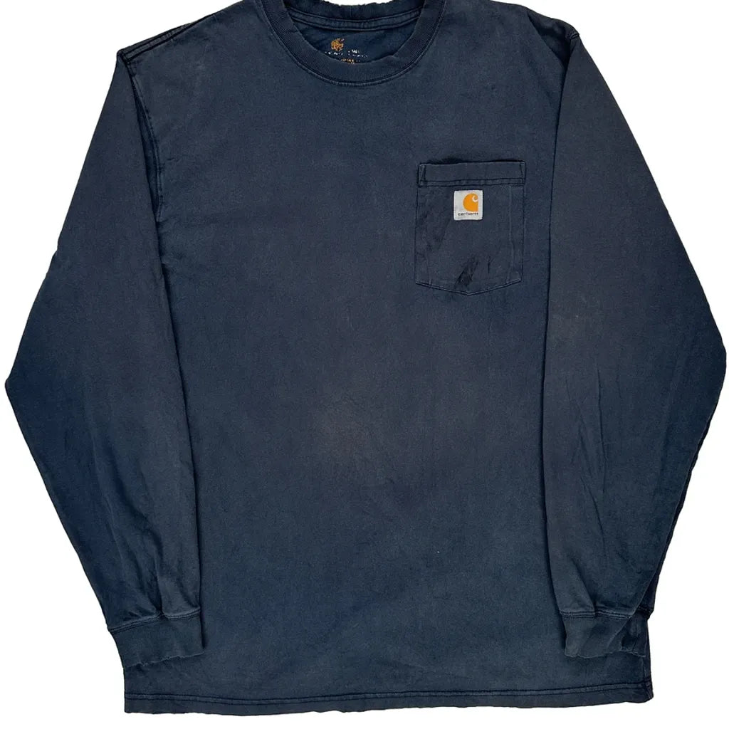 Carhartt Long Sleeve T-Shirt - Large Navy Cotton