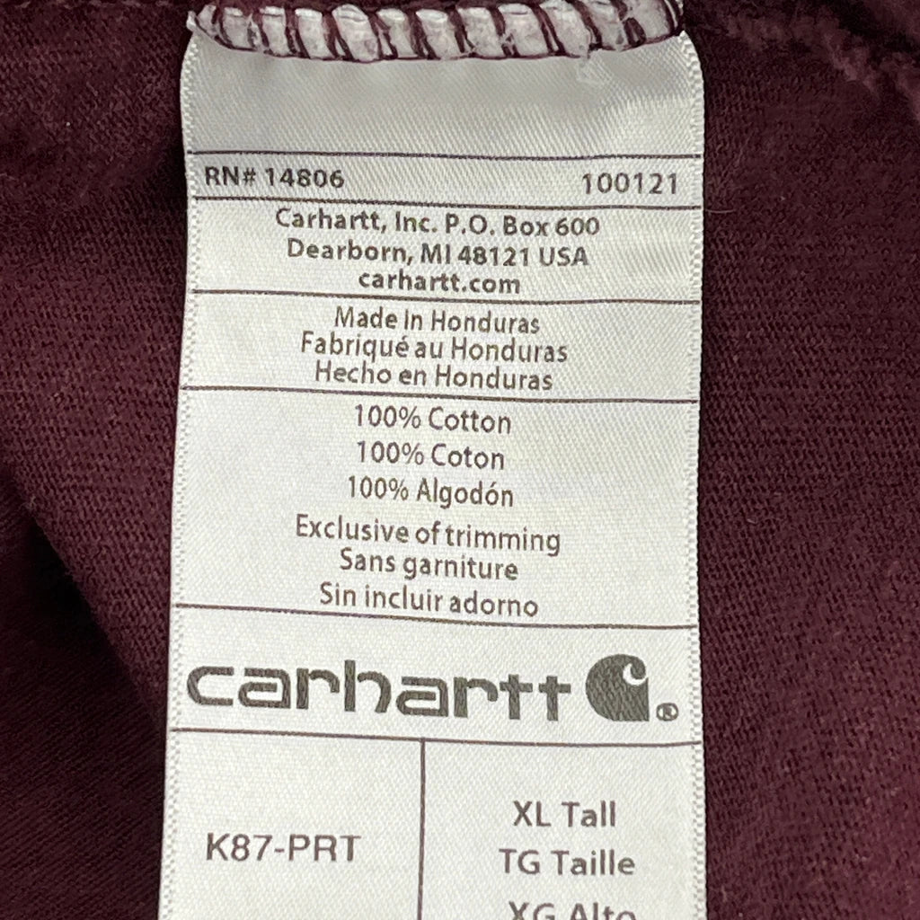 Carhartt Tall T-Shirt - XL Burgundy Cotton