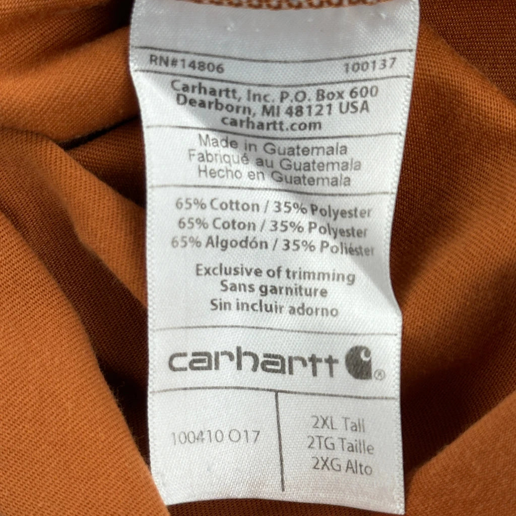 Carhartt T-Shirt - 2XL Orange Cotton Blend
