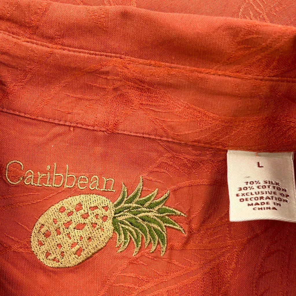 Caribbean Hawaiian Shirt - Large Orange Silk Blend