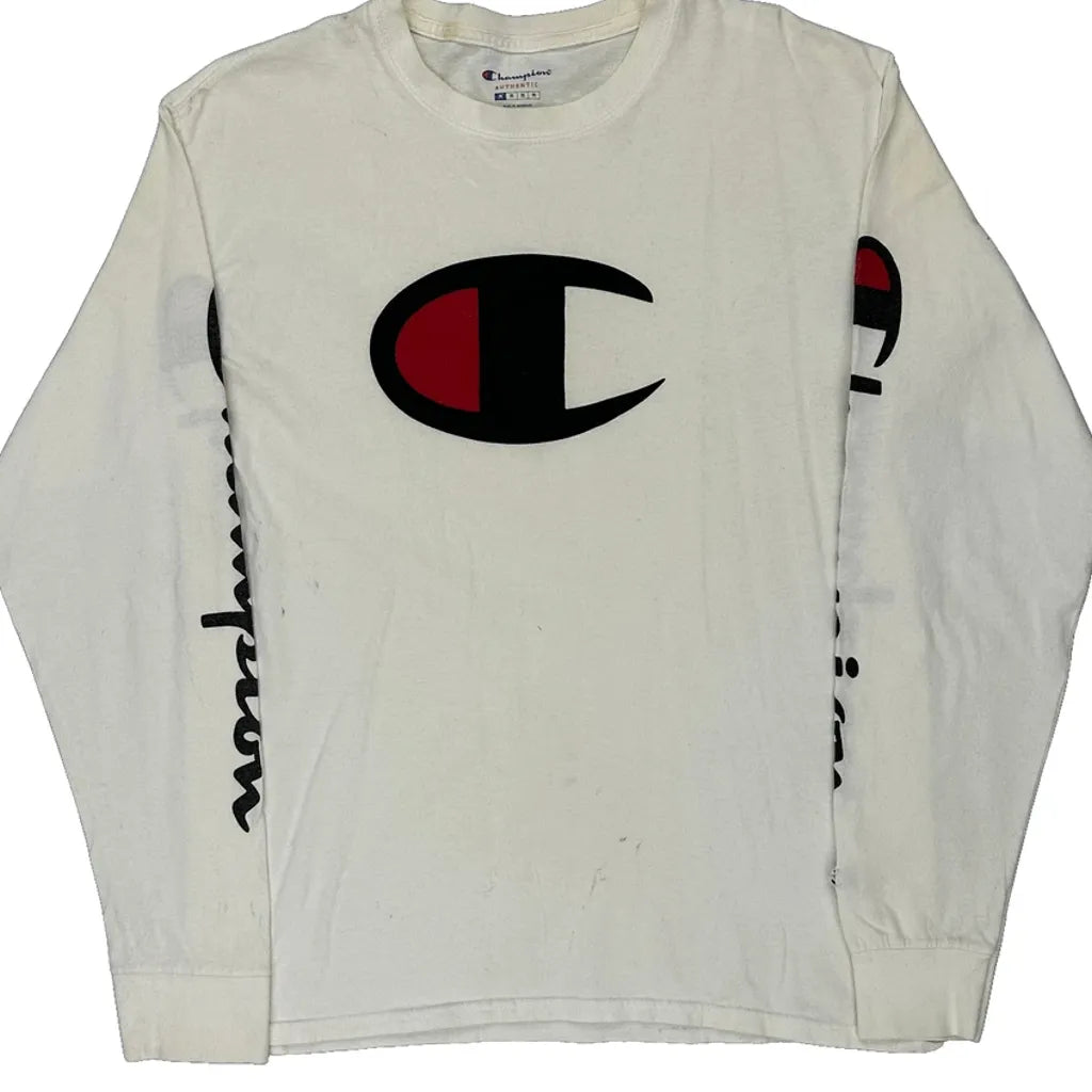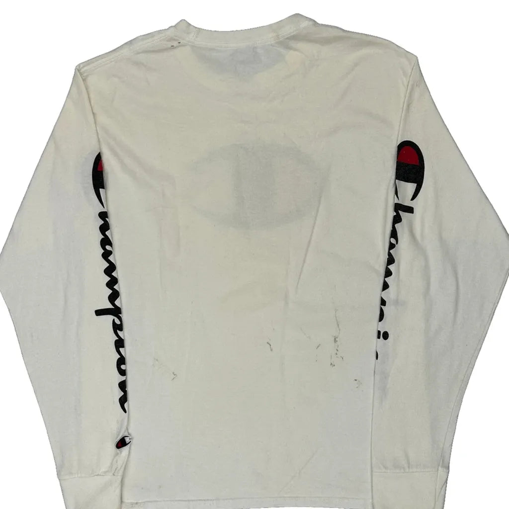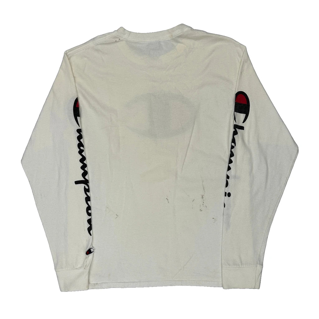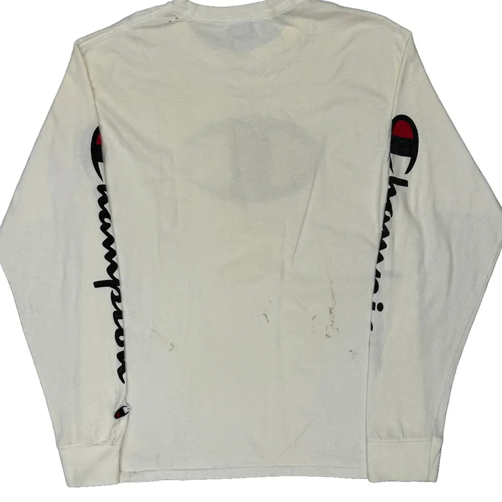 Champion Long Sleeve T-Shirt - Medium White Cotton