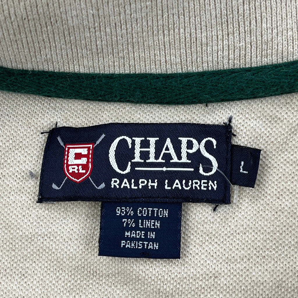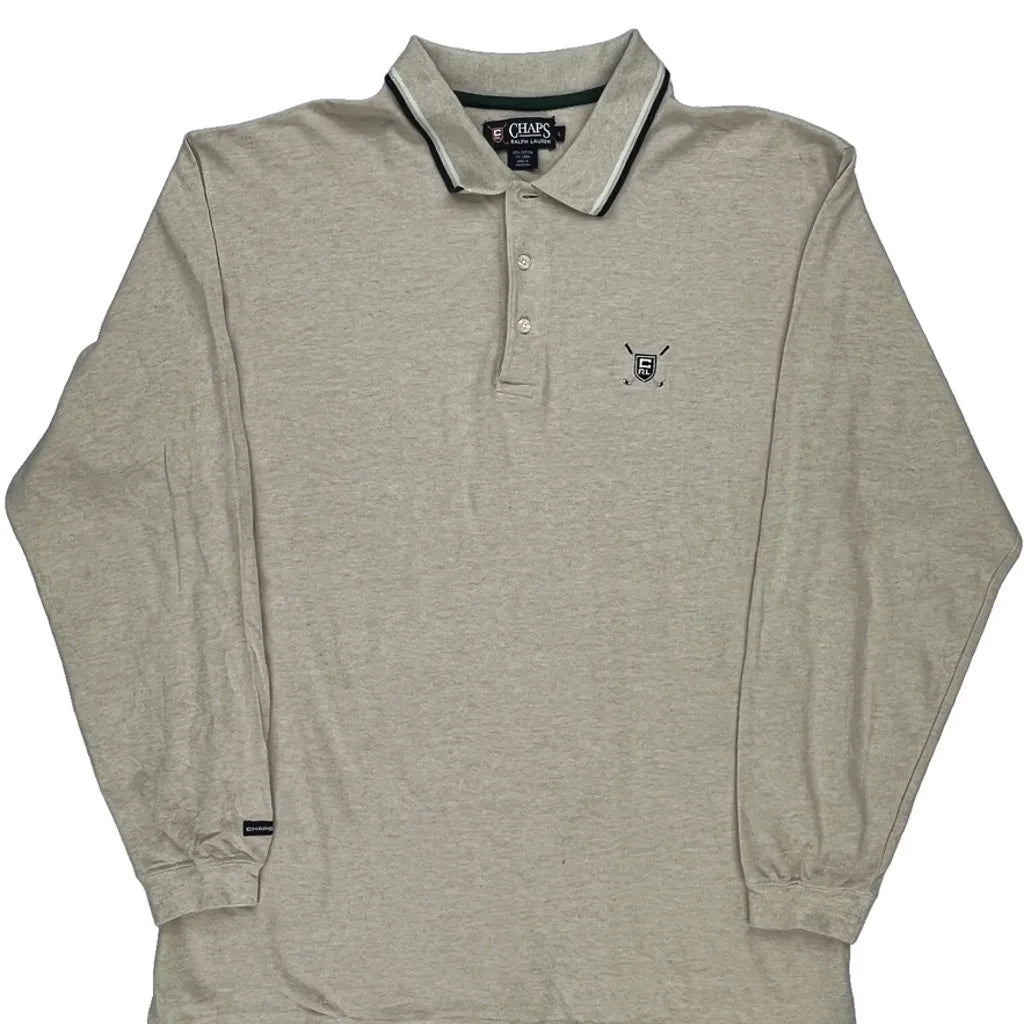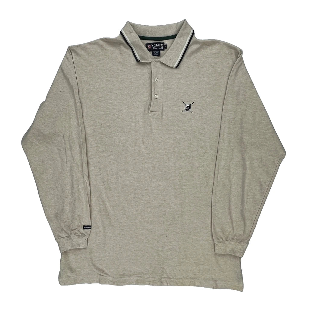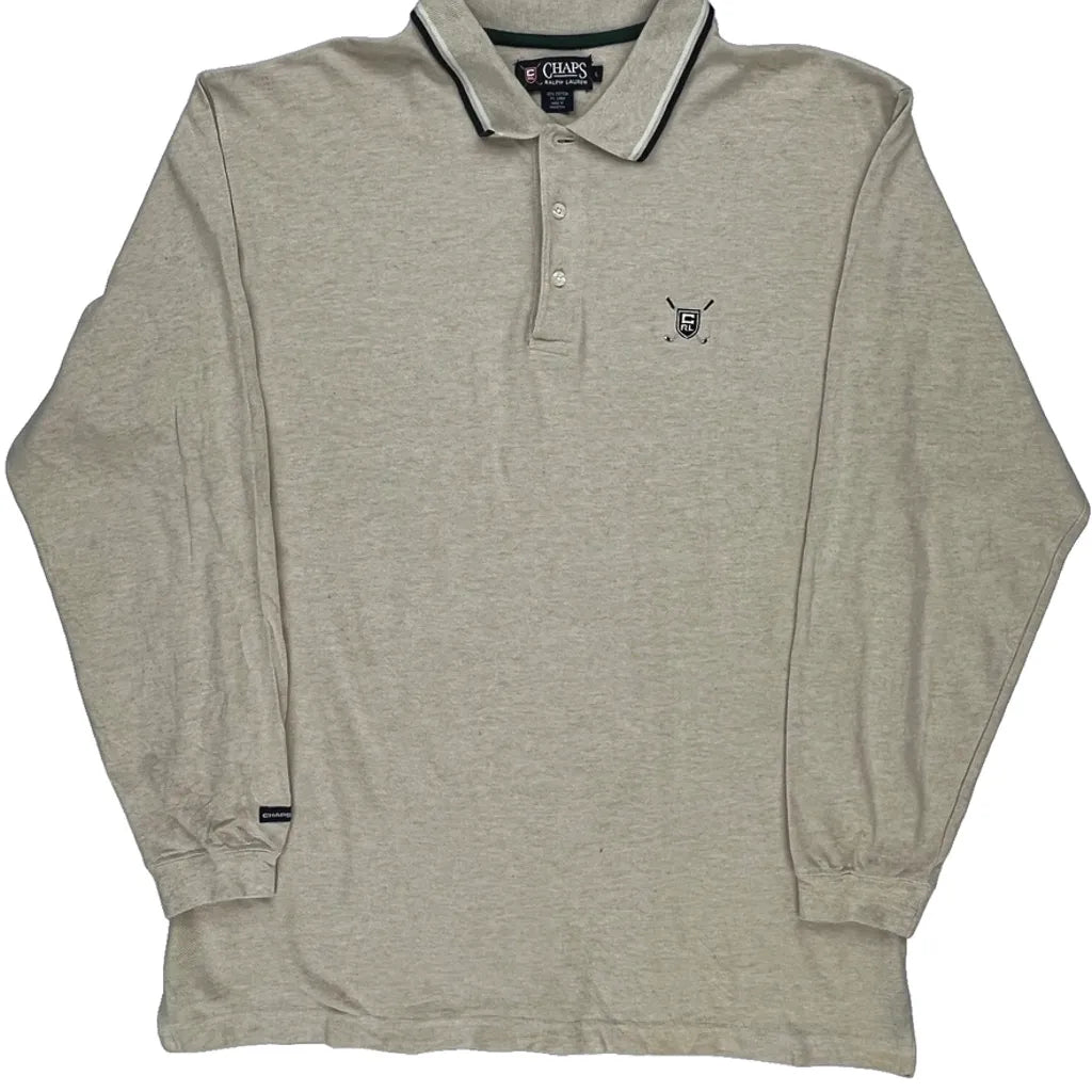 Chaps Ralph Lauren Long Sleeve Polo Shirt - Large Beige Cotton