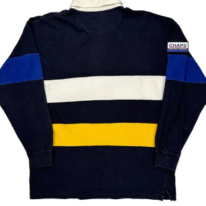 Chaps Ralph Lauren Striped Rugby Shirt - Large Blue Cotton