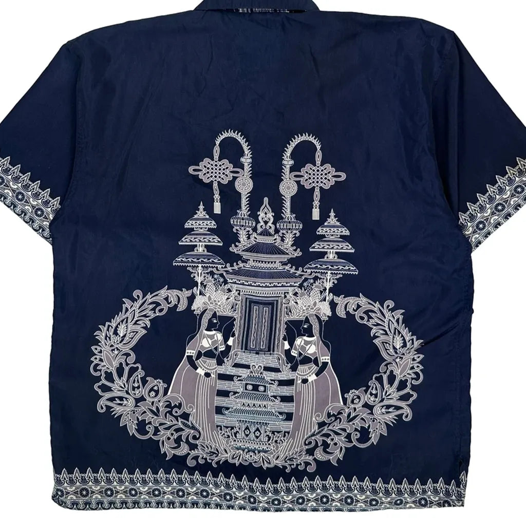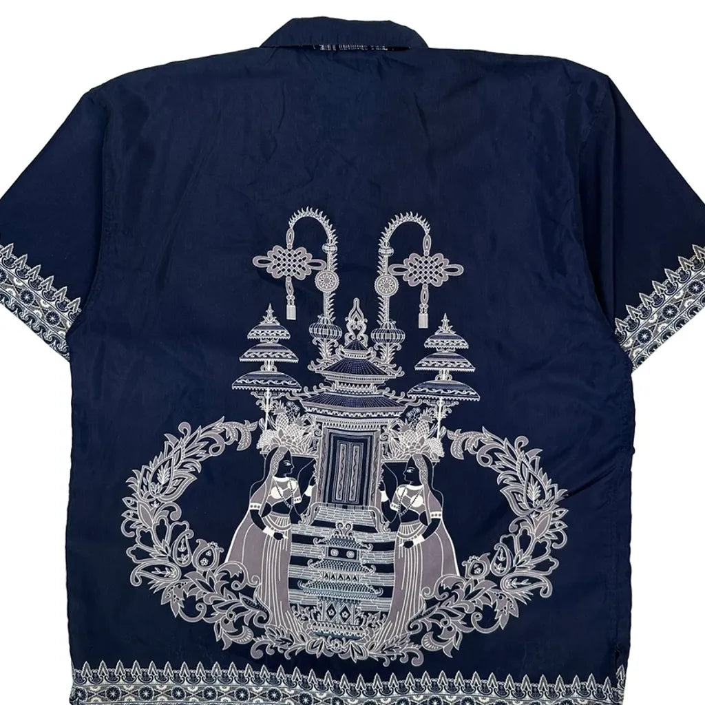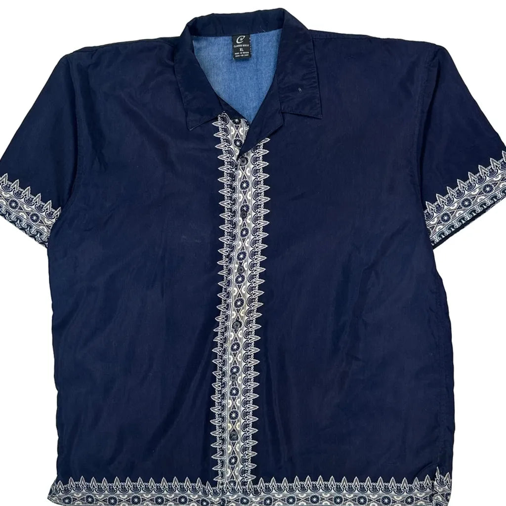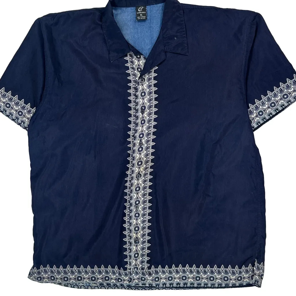 Navy Shirt With Intricate White Graphic Design