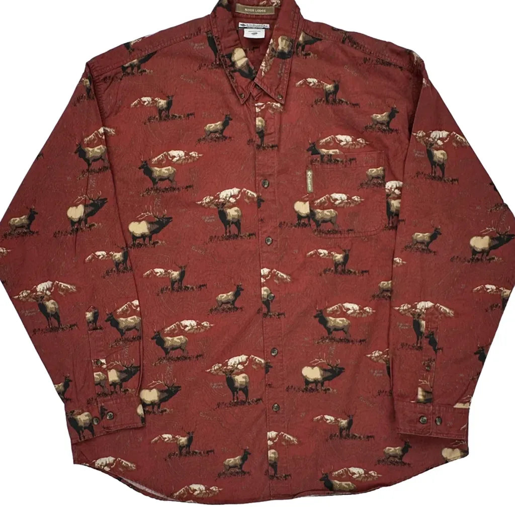 Elk Print All Over, Button-Down Collar