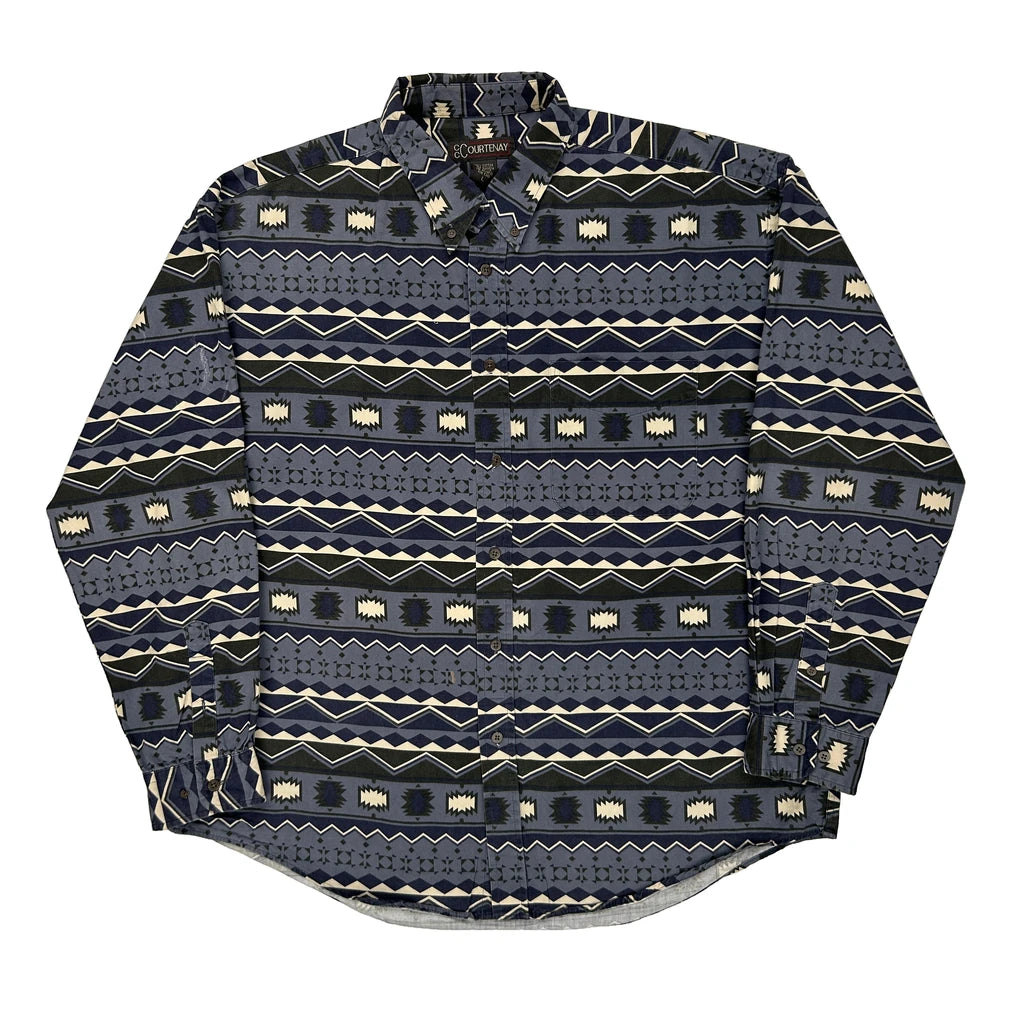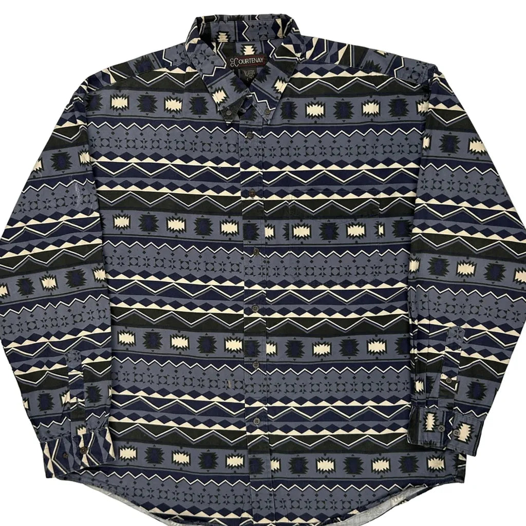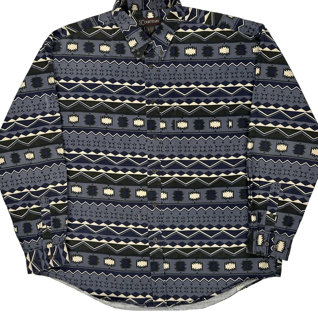 Courtenay Patterned Shirt - Large Blue Cotton