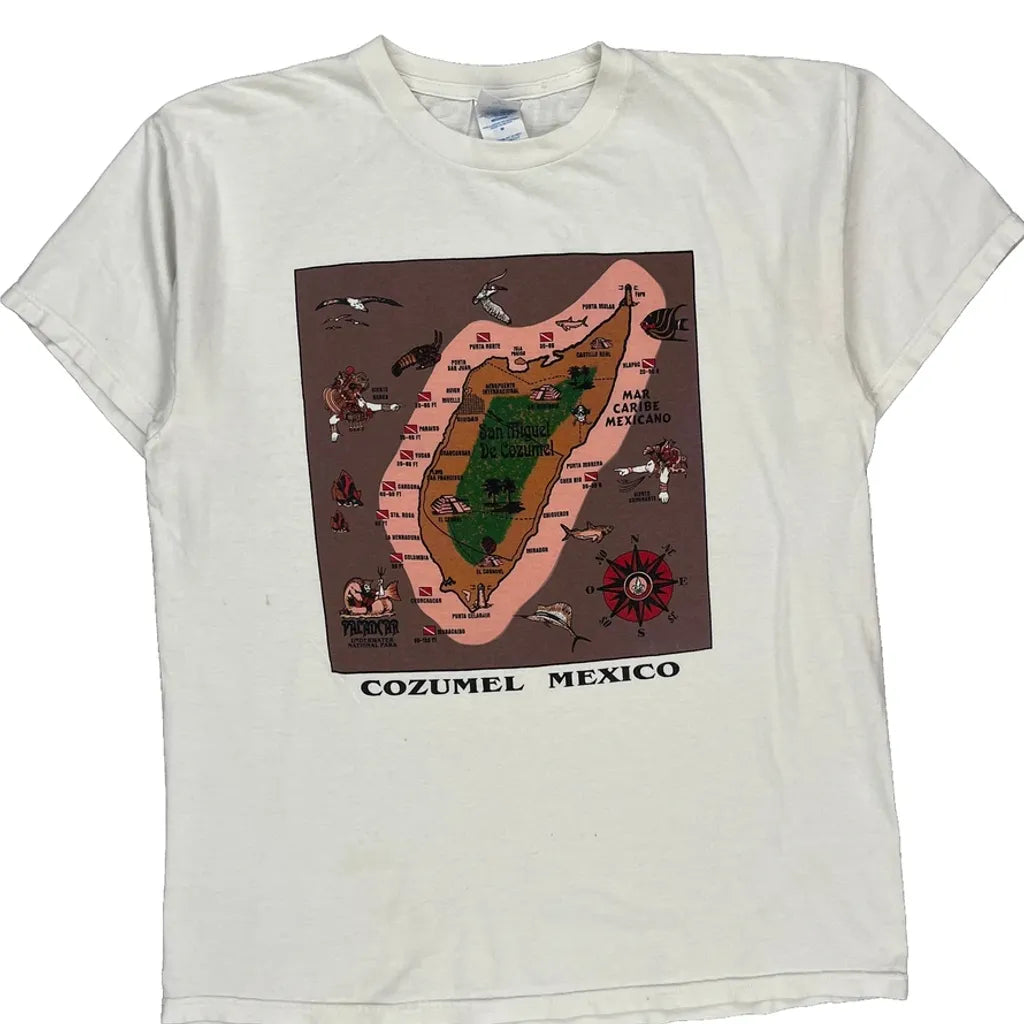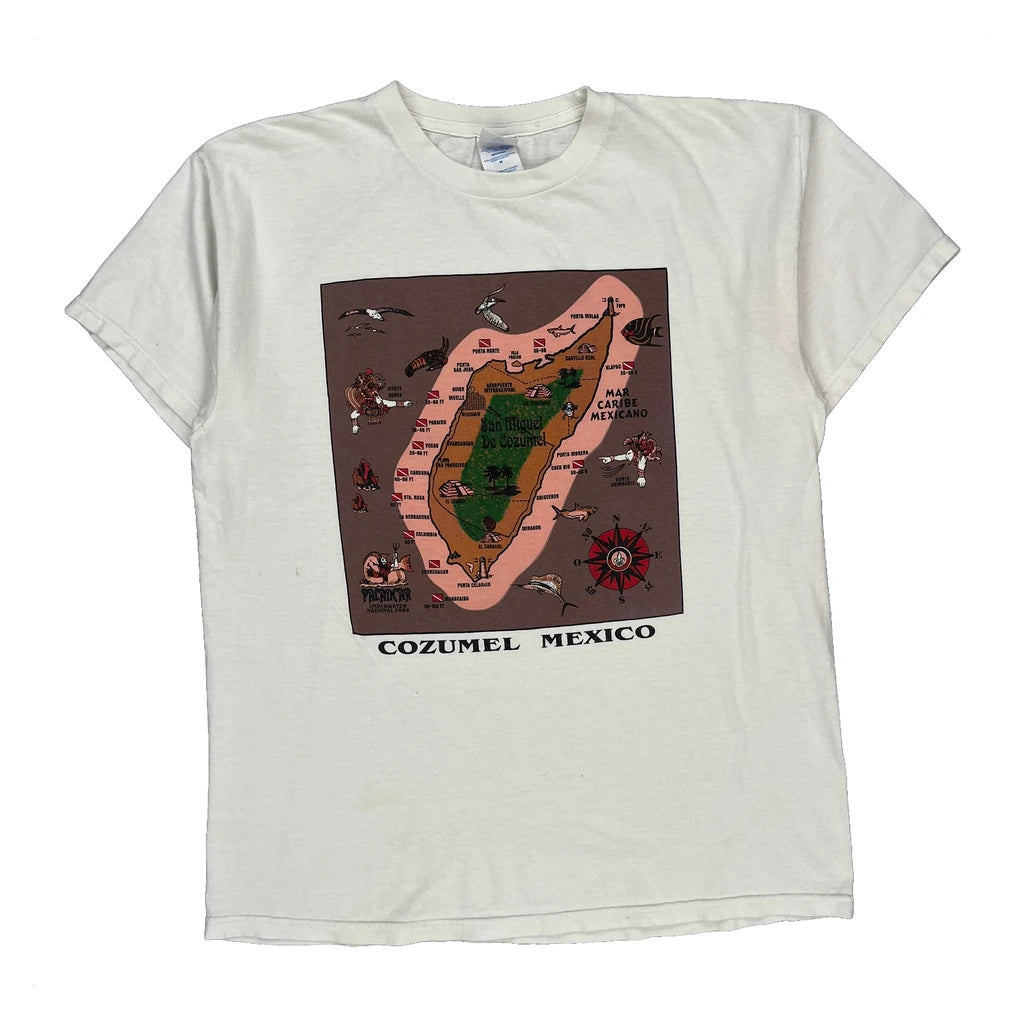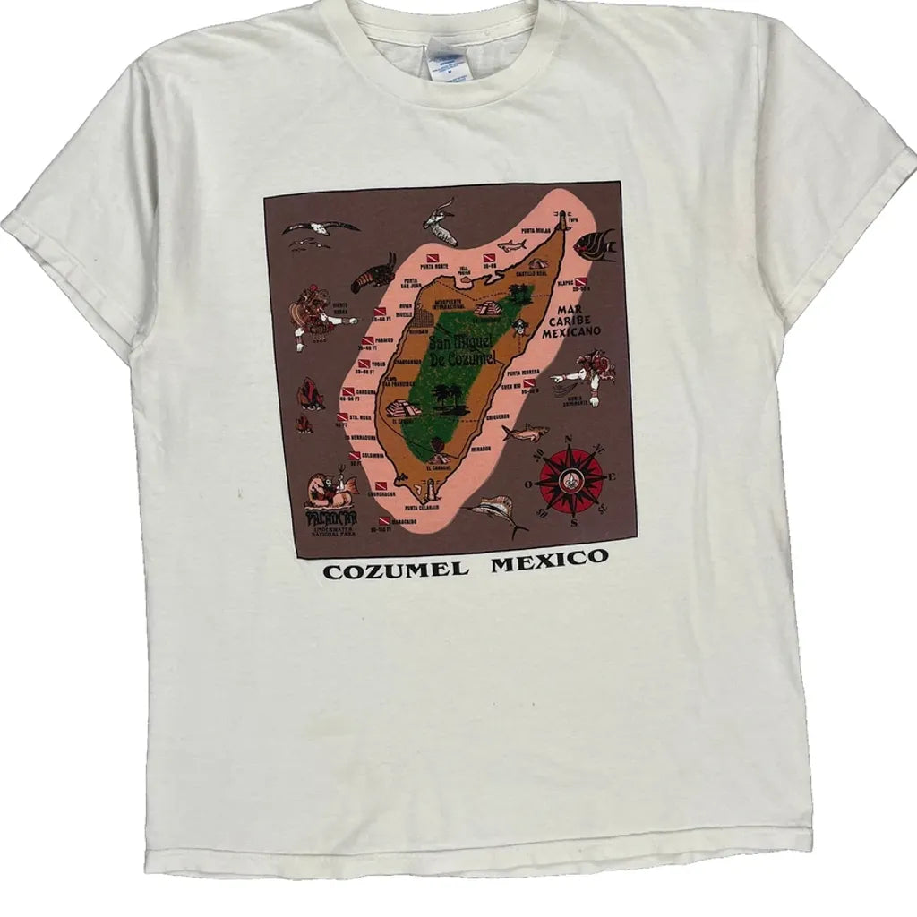 Cozumel Mexico Single Stitch M&O Graphic T-Shirt - Medium White Cotton